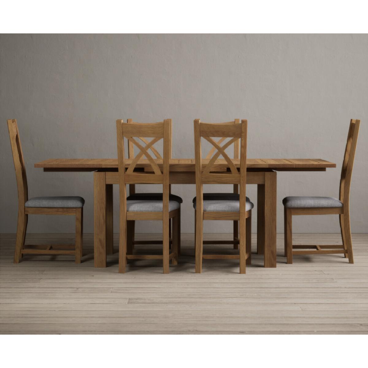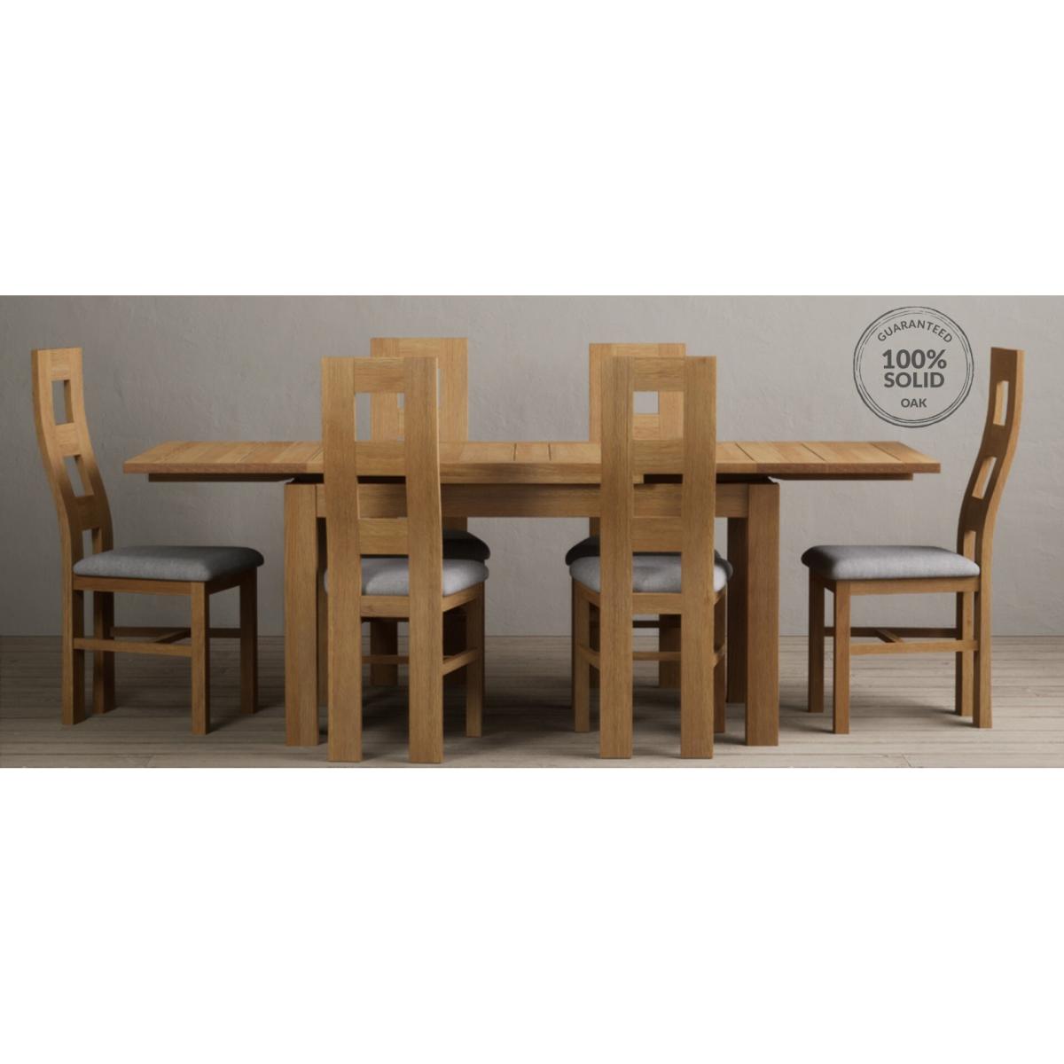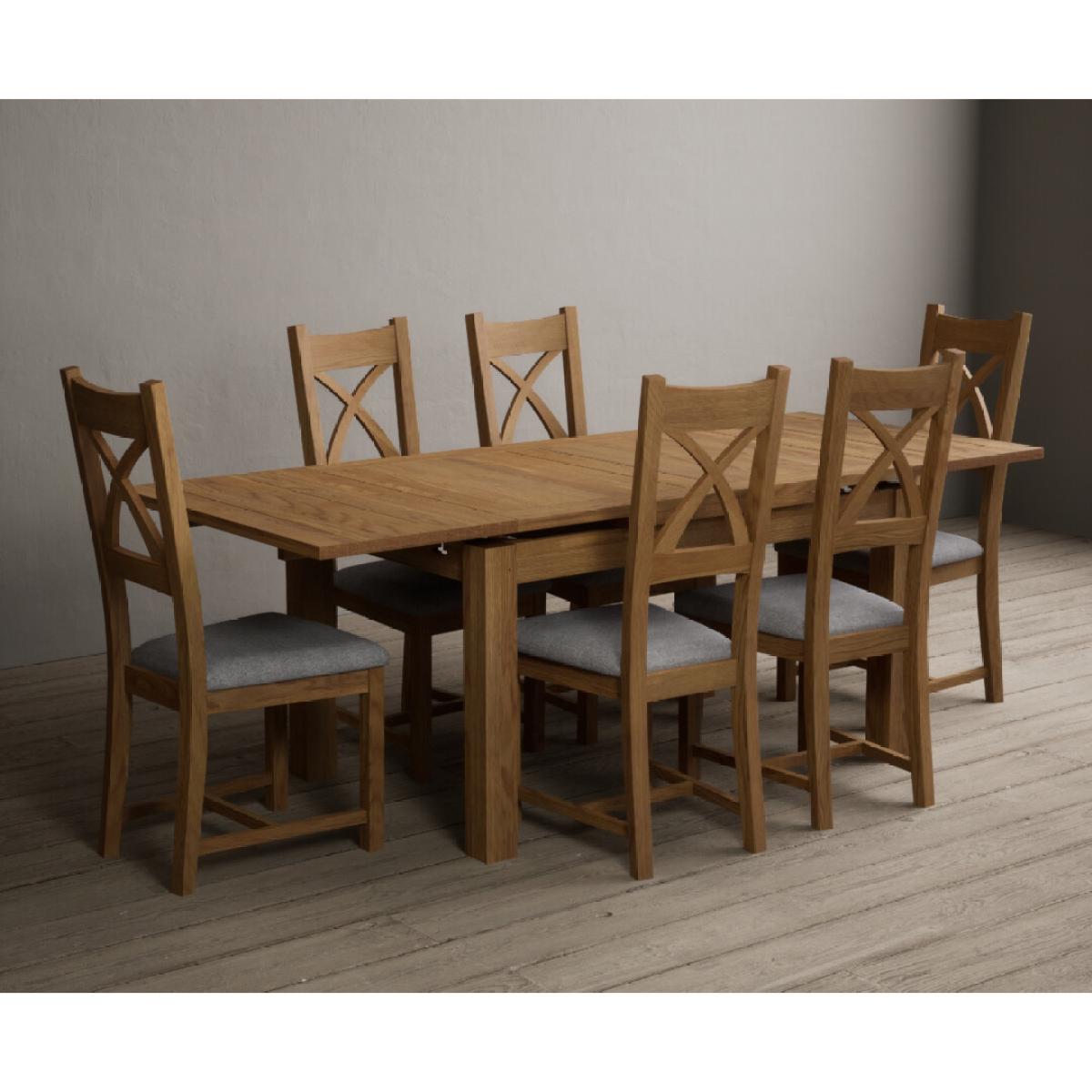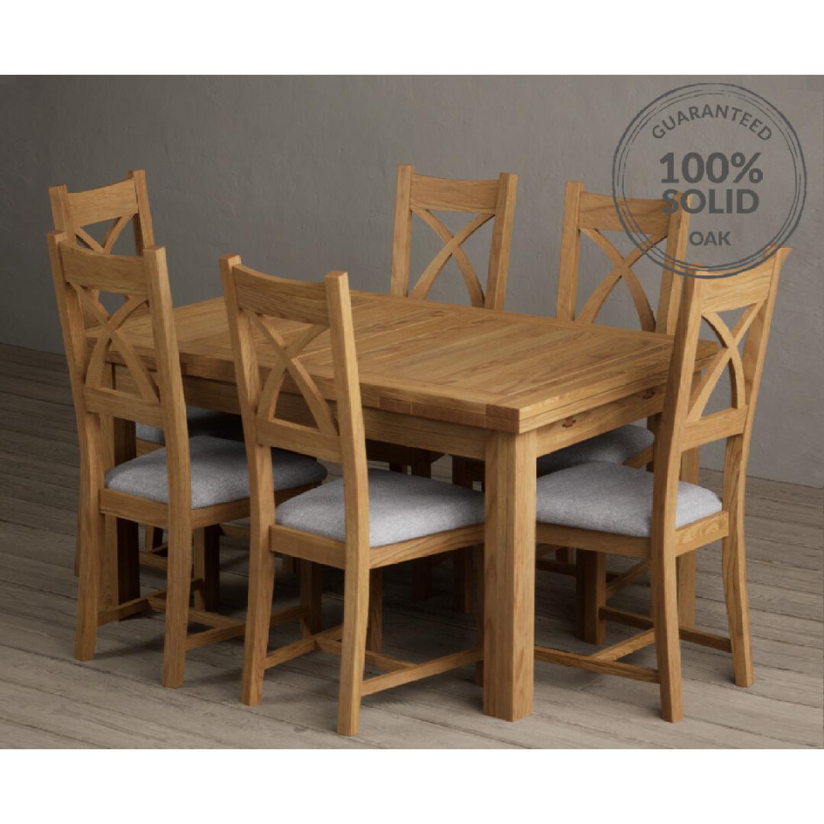 Hampshire 140cm Solid Oak Extending Dining Table With 6 Light Grey Natural Solid Oak X Back Chairs