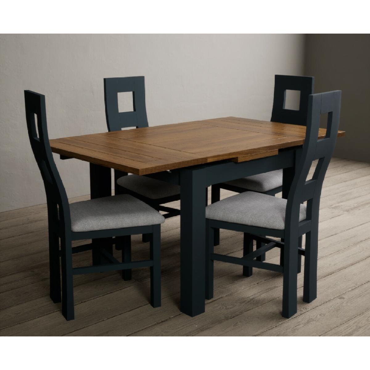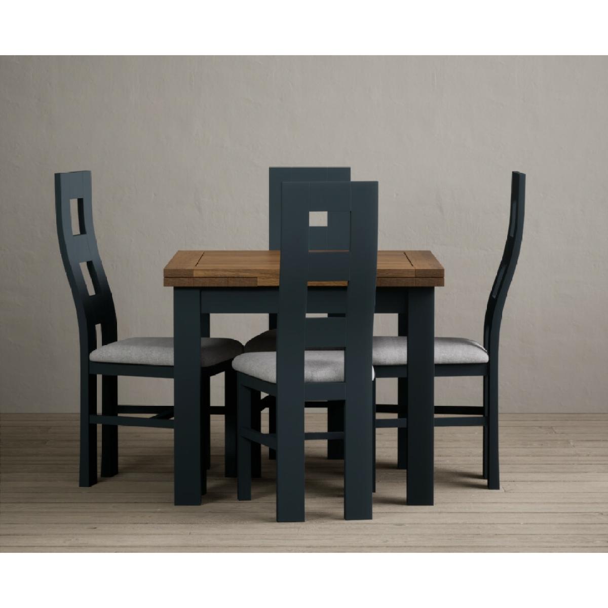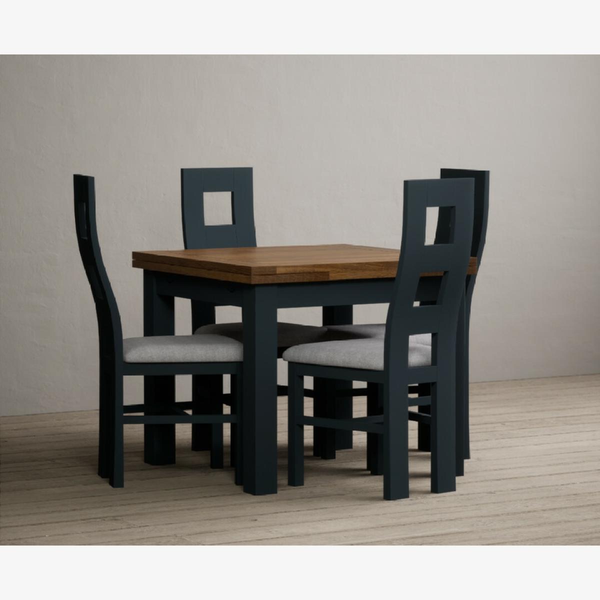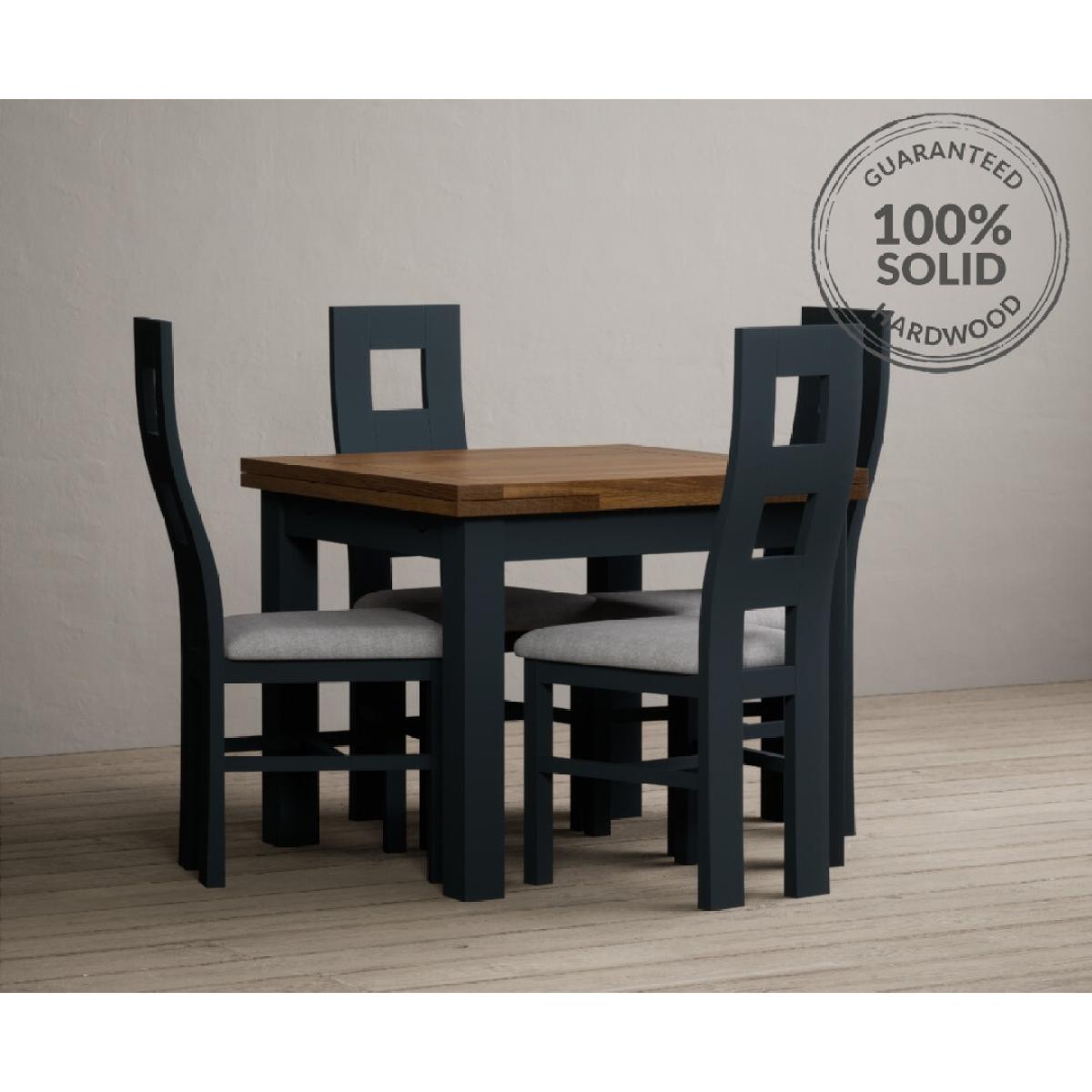The Hampshire 90cm Oak and Dark Blue Extending Dining Table with Flow Back Chairs is a painted extending dining set, made with 100% solid wood and 100% solid oak.