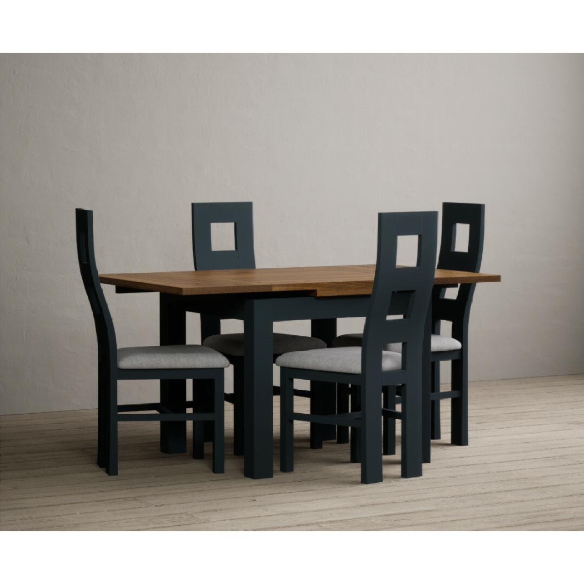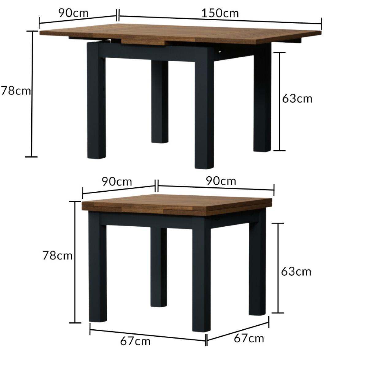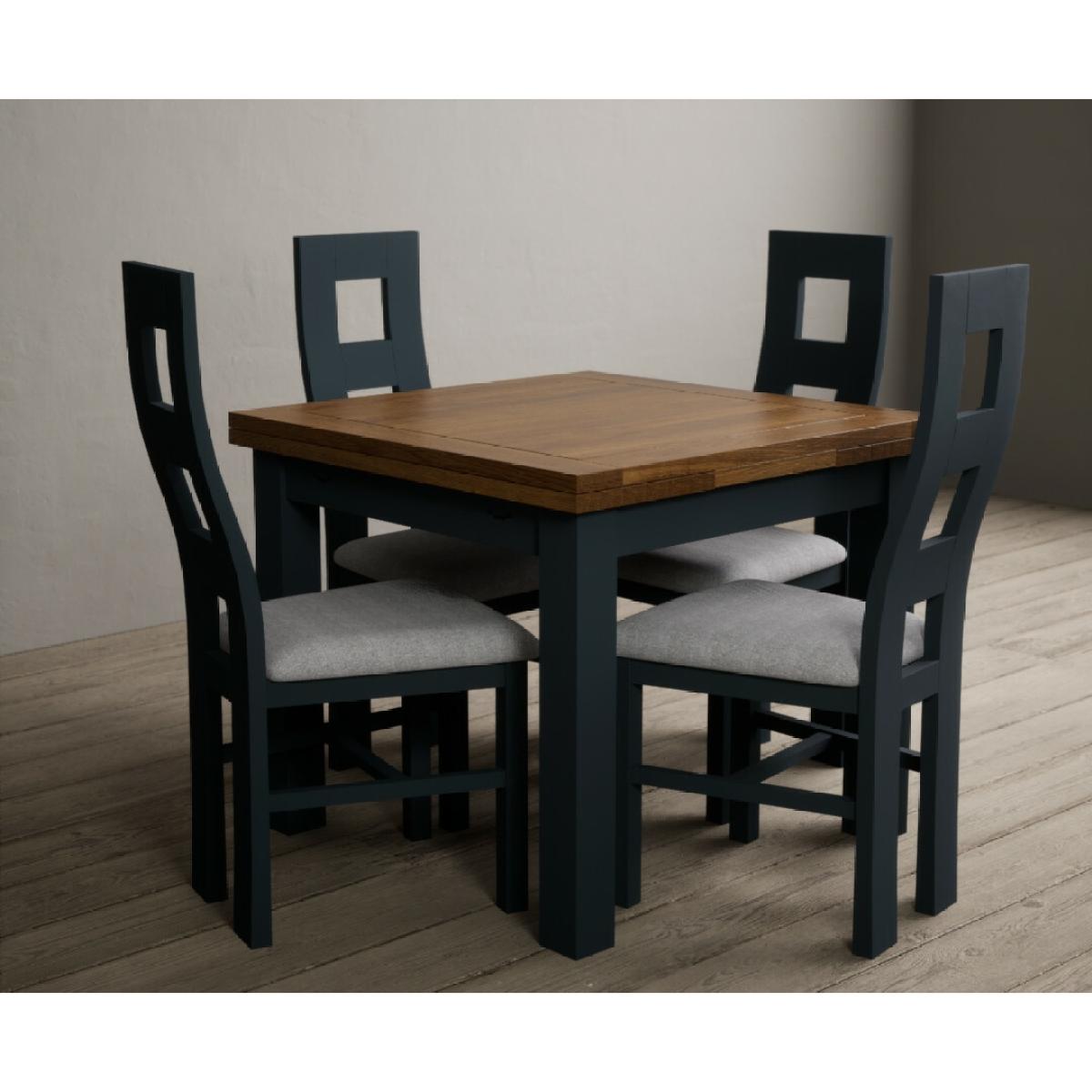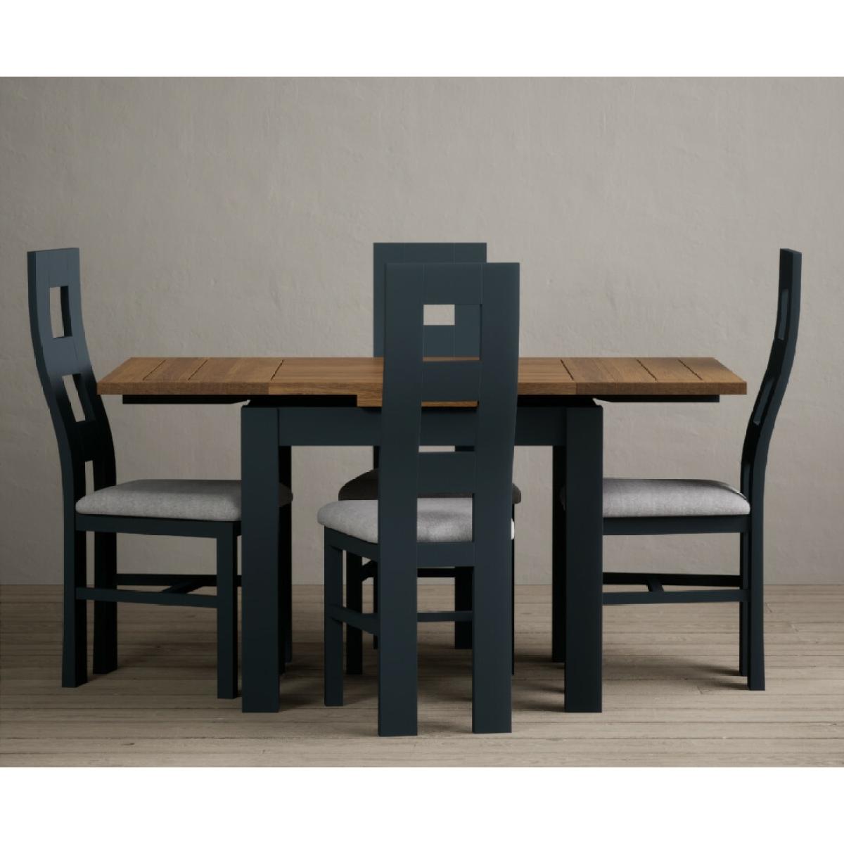 The Hampshire 90cm Oak and Dark Blue Extending Dining Table with Flow Back Chairs is a painted extending dining set, made with 100% solid wood and 100% solid oak.