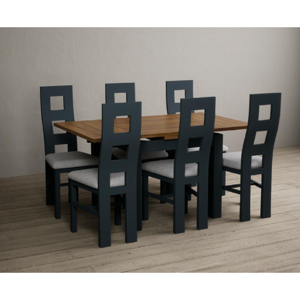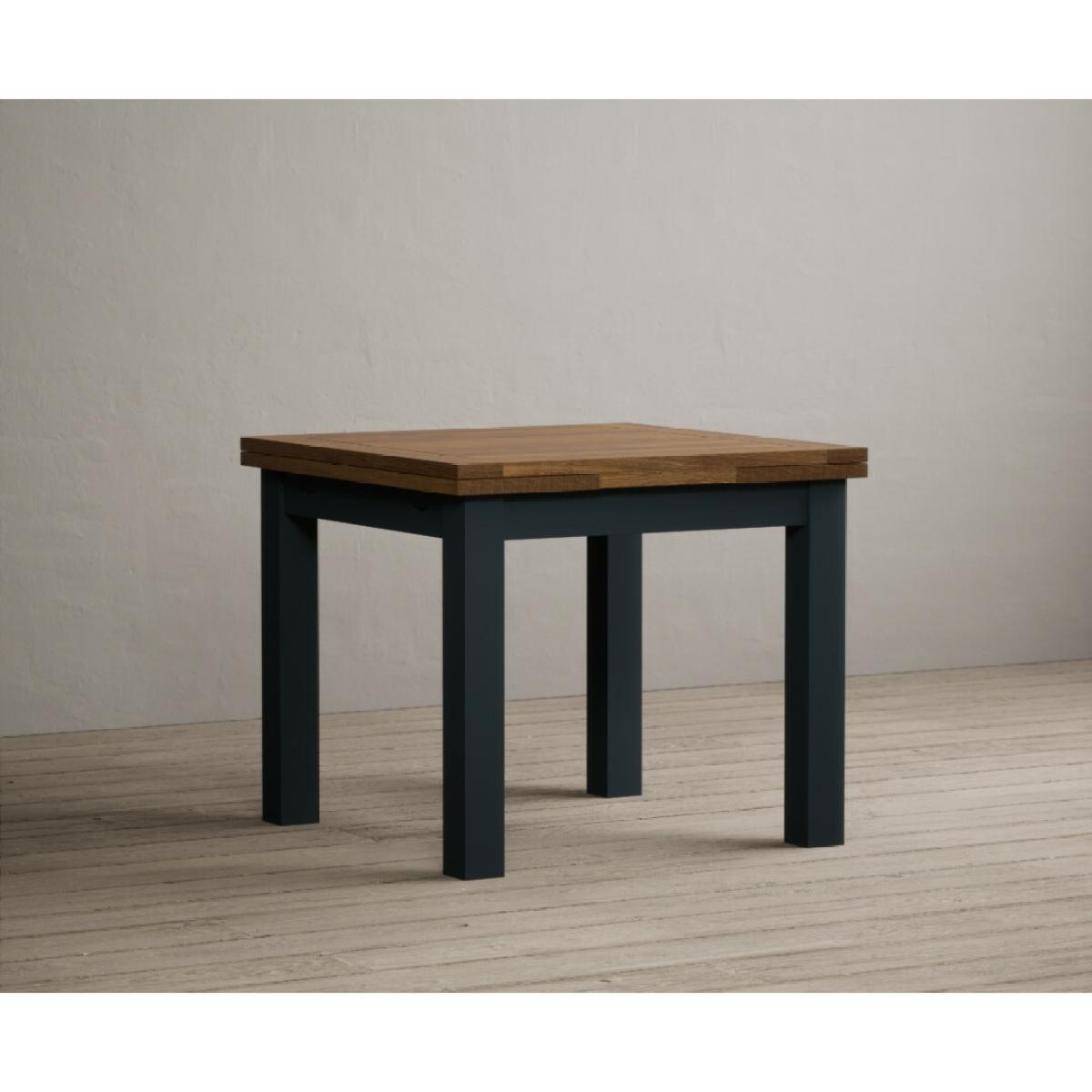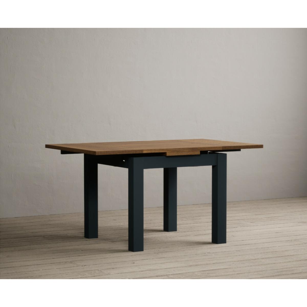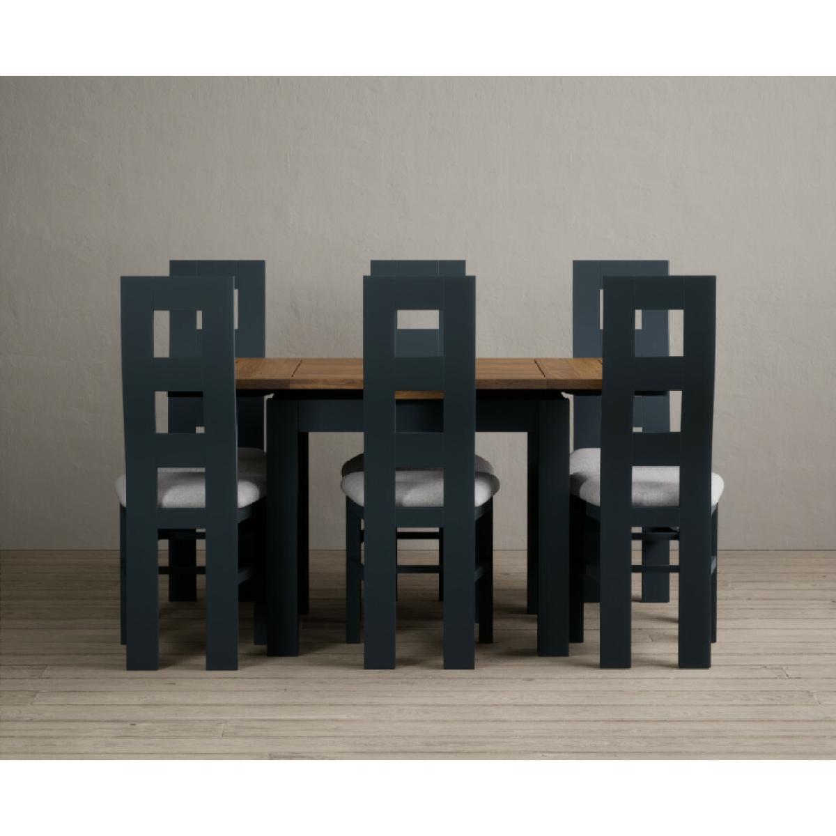 The Hampshire 90cm Oak and Dark Blue Extending Dining Table with Flow Back Chairs is a painted extending dining set, made with 100% solid wood and 100% solid oak.