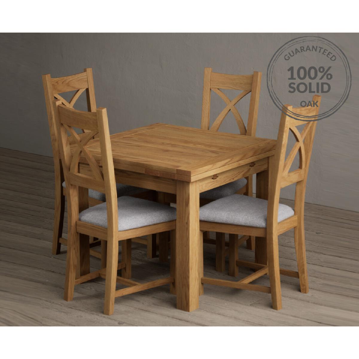 This dining table set strikes a great balance between classic and contemporary styles. The solid oak lends a natural warmth and durability, making it suitable for both traditional and modern interiors. I love the clean lines and the practical size, which easily extends to accommodate guests, perfect for everyday family life or entertaining. The light grey chairs add a subtle colour contrast that works well in neutral, Scandinavian, or rustic farmhouse interiors. For styling tips, consider adding textured textiles like linen or wool throws and cushions to soften the look, and pairing it with greenery to bring a fresh feel. It’s versatile enough to sit comfortably in open-plan spaces or more cosy dining areas, making it a reliable statement piece that blends practicality with understated elegance.