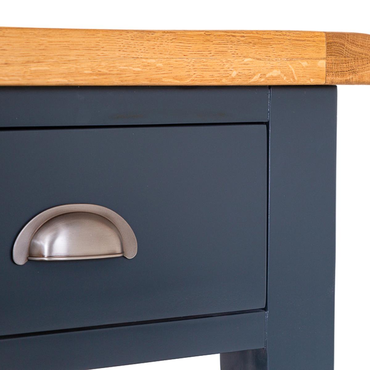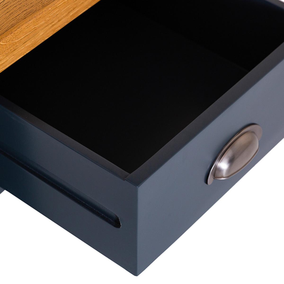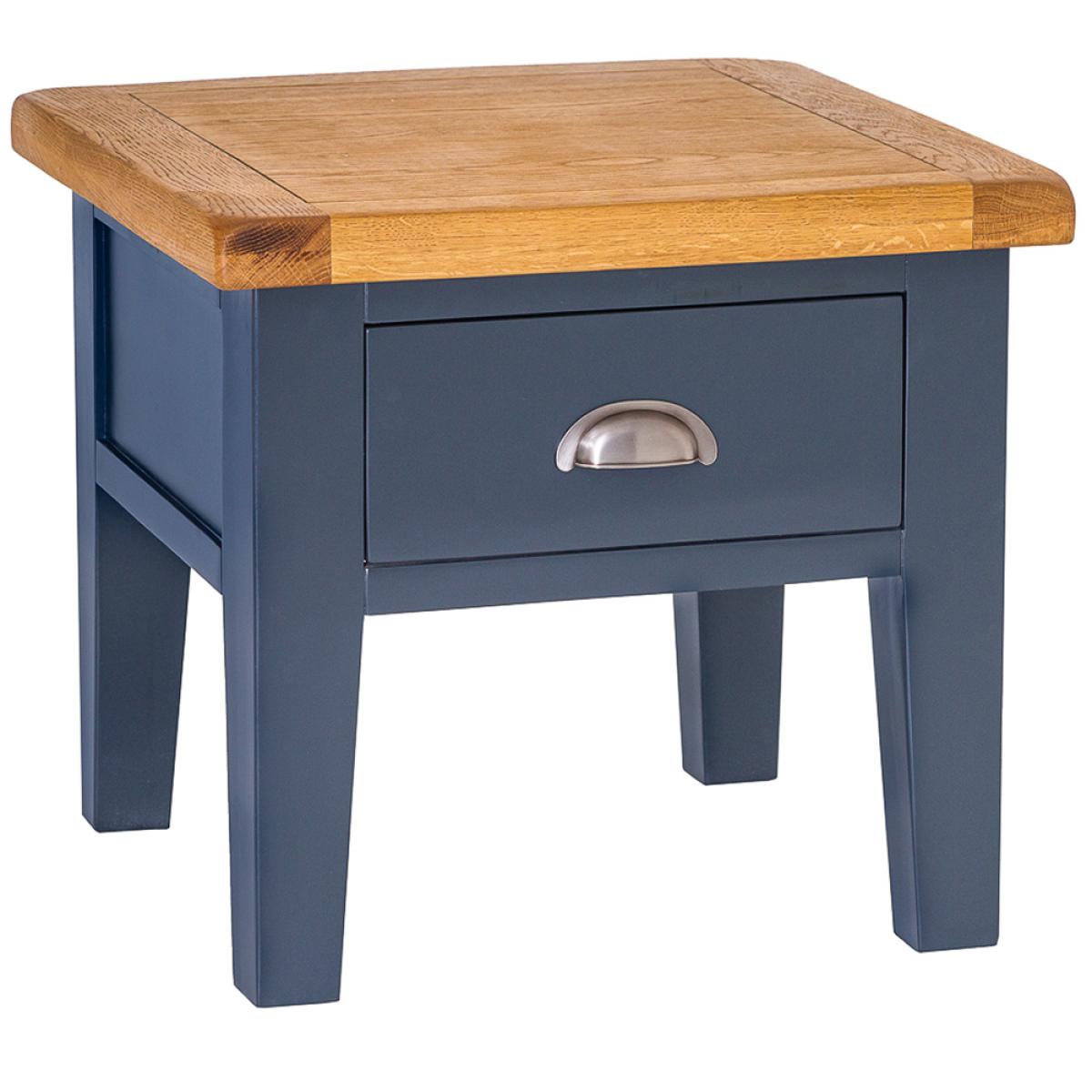 Adding those quaint little finishing touches is what turns a house into a home you can enjoy for a lifetime. Our Hampshire Blue Painted Oak Lamp Table works wonders in the living room, master bedroom, and even the open plan dining room. The single drawer offers plenty of storage space, and is beautifully accented by the contemporary brushed metal handle. Choose a matching lamp to sit atop the thick oak tabletop of the Side Table and you'll be able to add the perfect piece of interior design to your home. Just what you need when you're in the mood to treat yourself to something special.