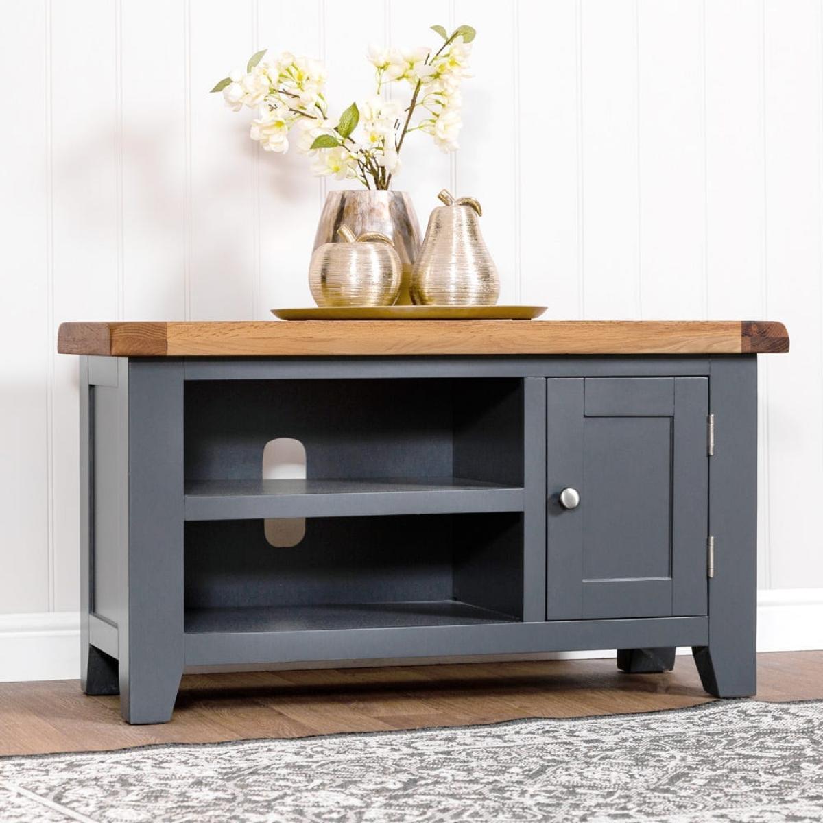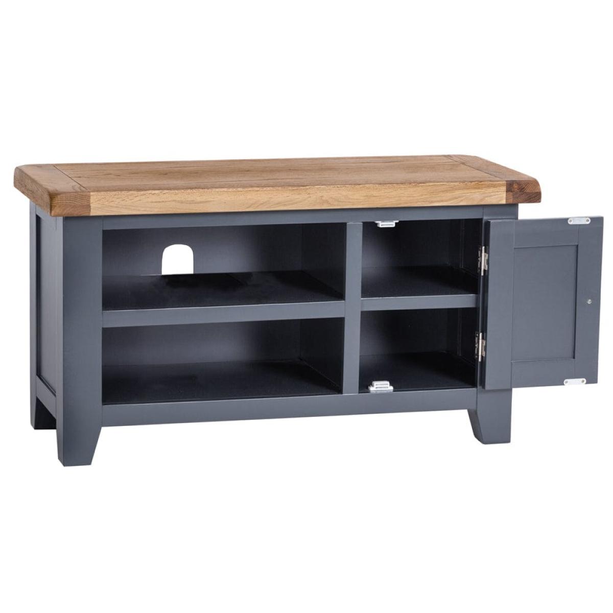 I love this little media unit for its versatile colour palette and practical design. The Hampshire blue hue adds a calm, sophisticated touch that works well in both contemporary and traditional interiors, especially when paired with warm woods or neutral tones. Its compact size makes it ideal for smaller living spaces or as an accent piece in larger rooms. Styling tips include keeping the top clear for decorative objects like vases or books, while utilising the open shelves for media devices or baskets for hidden storage. The single door offers additional concealed storage, helping to keep clutter out of sight, which makes it a practical and stylish choice for those looking to add character without overwhelming their space.