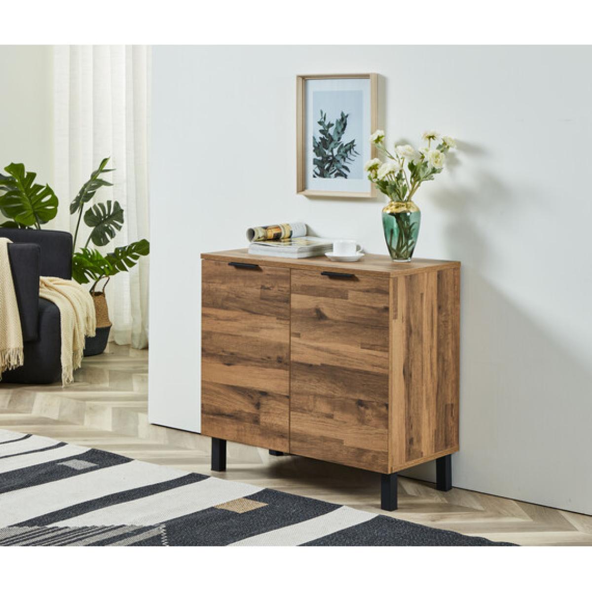 With a modern oak finish and contrasting black metal legs and handles, this Hampshire Compact Sideboard offers a perfect match for your living room. It's easy to assemble and clean for convenience and adds a stylish finishing touch to your space. The unit features plenty of storage space on the tabletop and inside the sideboard itself, giving you somewhere to store extra crockery, books, DVDs, and more. Crafted with a rich oak colour, it's a beautiful piece to coordinate with your existing decor.