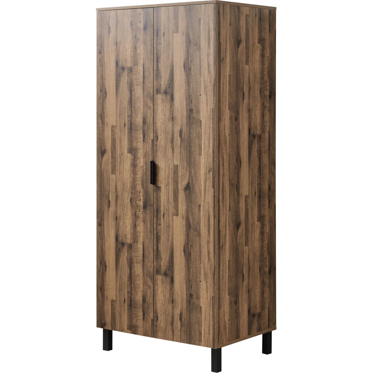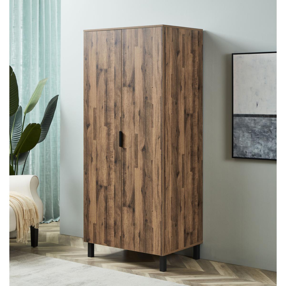 With a modern oak finish and contrasting black metal legs and handles, this Hampshire Double Wardrobe offers a perfect match for your bedroom. It's easy to assemble and clean for your convenience and features plenty of storage space for your clothes. The stylish, contemporary wardrobe also has a built-in shelf, which is perfect for shoes, extra bedding, bags, or folded clothes, so you get the most from your space.