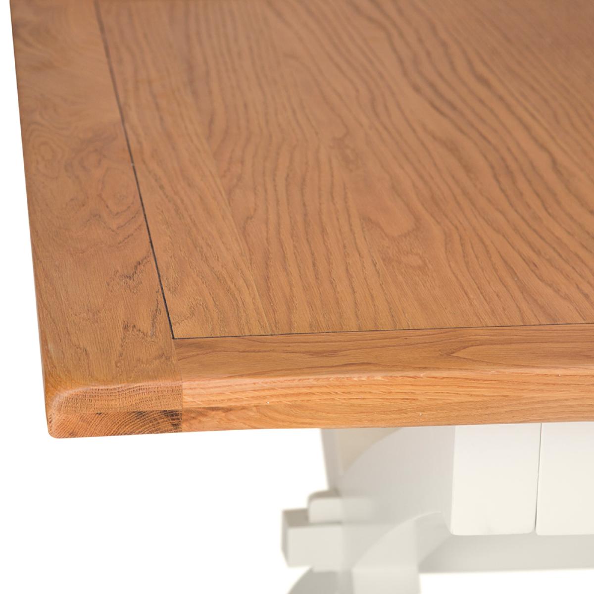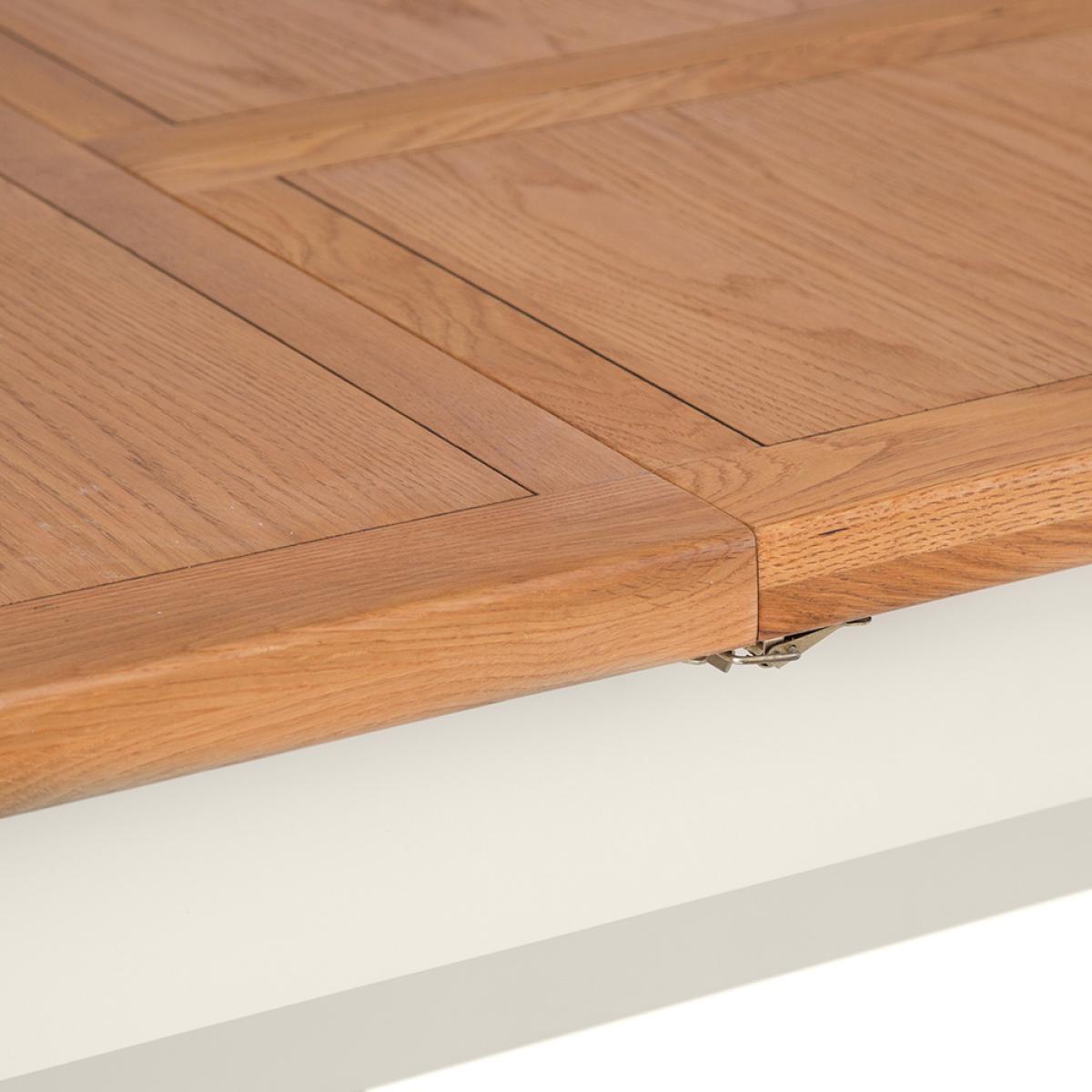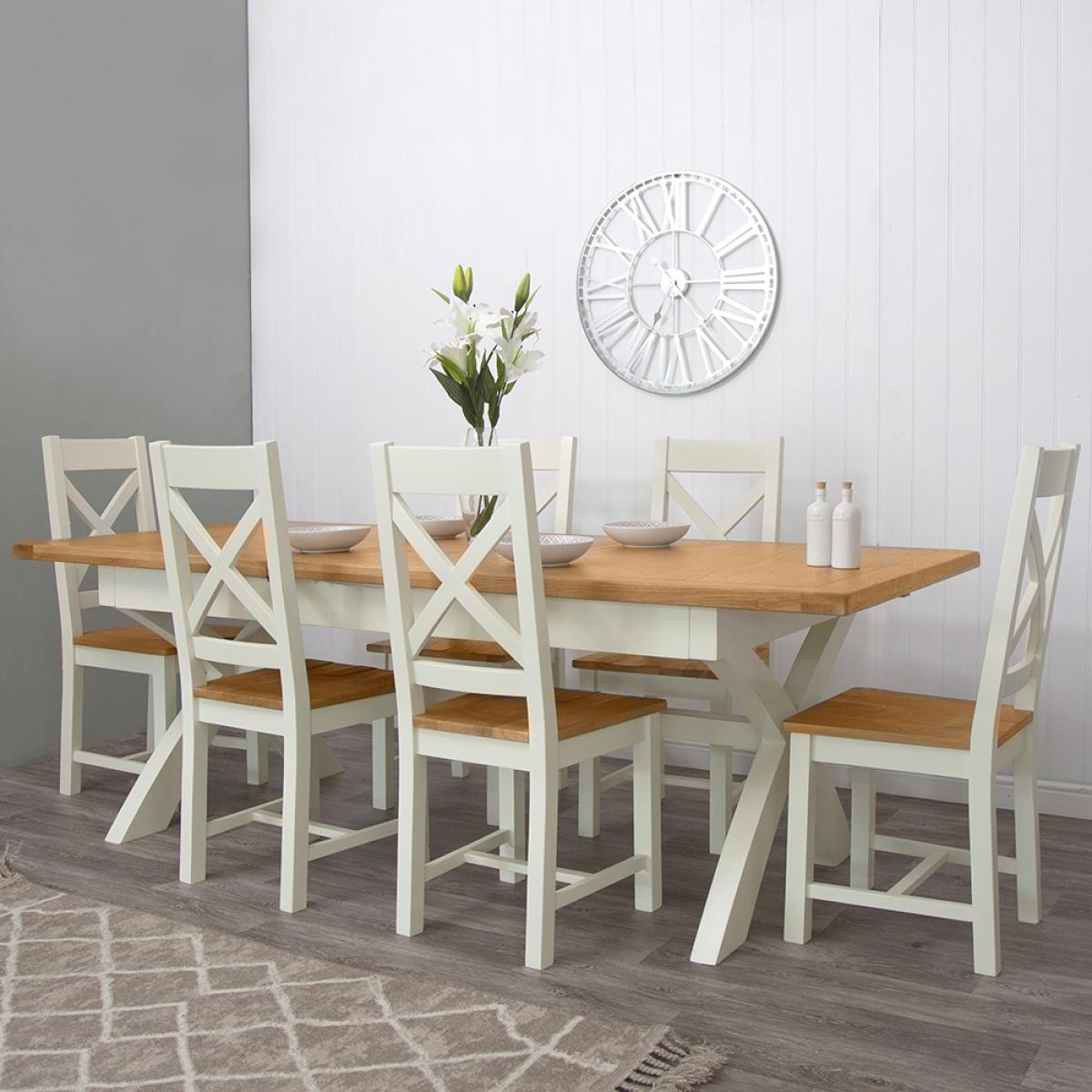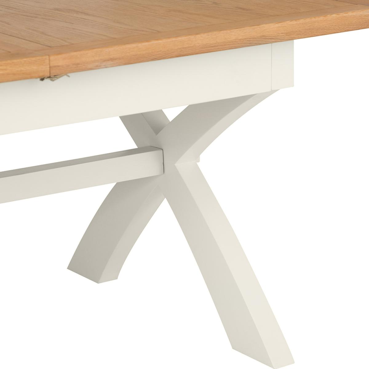 Seating your guests is all about providing a backdrop that puts them at ease whilst also building excitement about what lies ahead. Our Hampshire Ivory Painted Oak 1. 8m Cross Extending Table is the perfect way to make a statement in the dining room that will have everyone excited to tuck into their first course. The expertly ap-plied ivory painted finish sets the tone for the whole room, whilst the chunky oak top is the classic homage to the farmhouse style we all know and love. Thanks to the smooth extender built into your new Dining Table you’ll be able to cater for the whole family with ease.