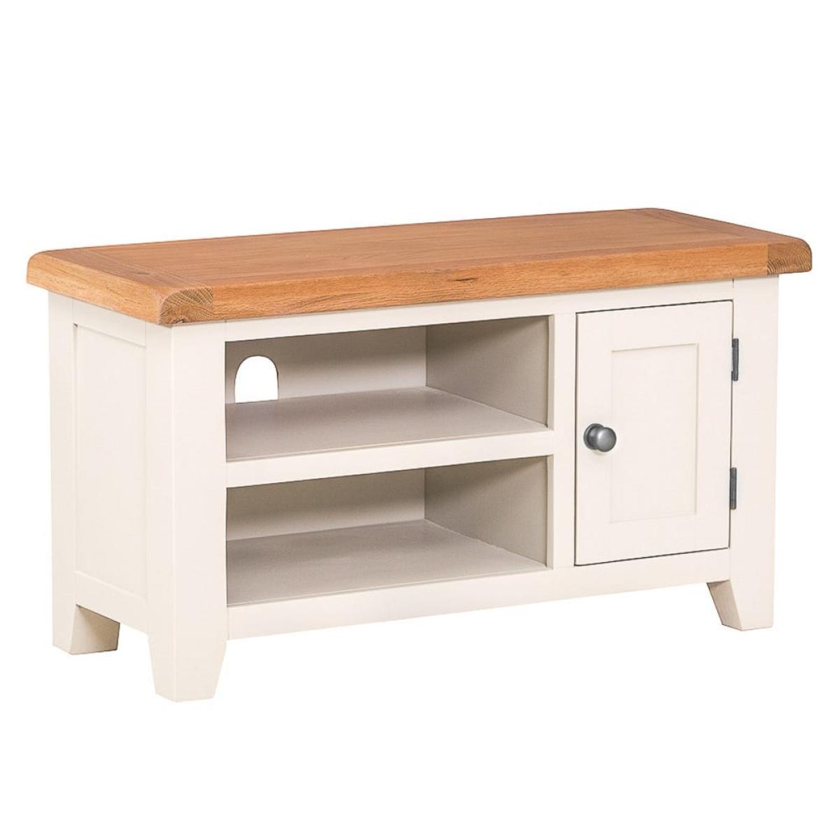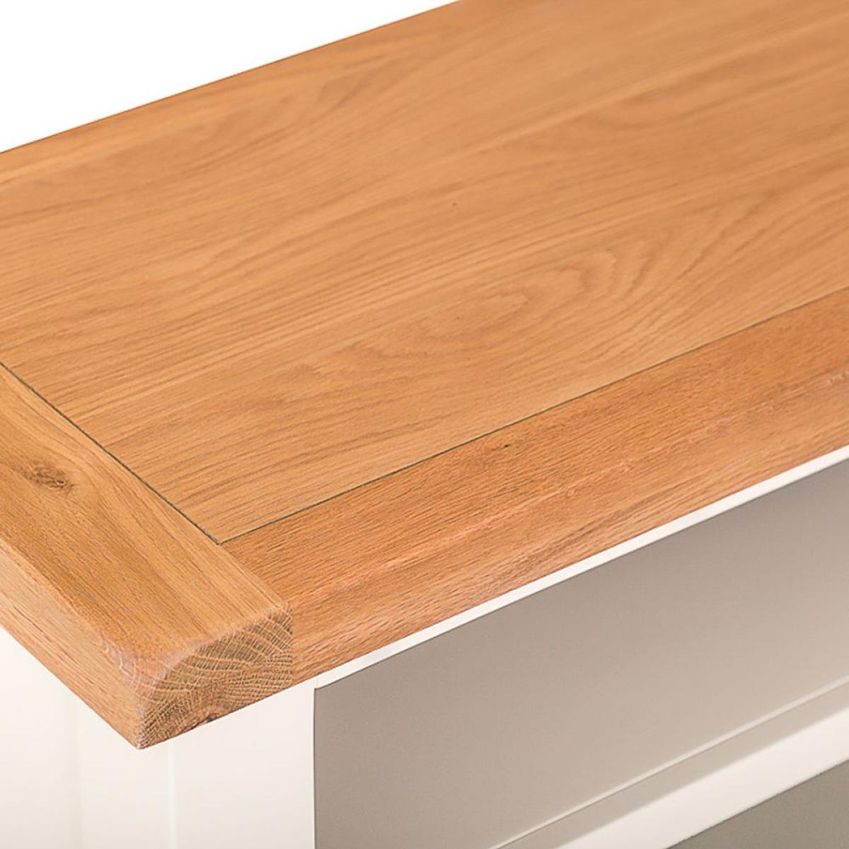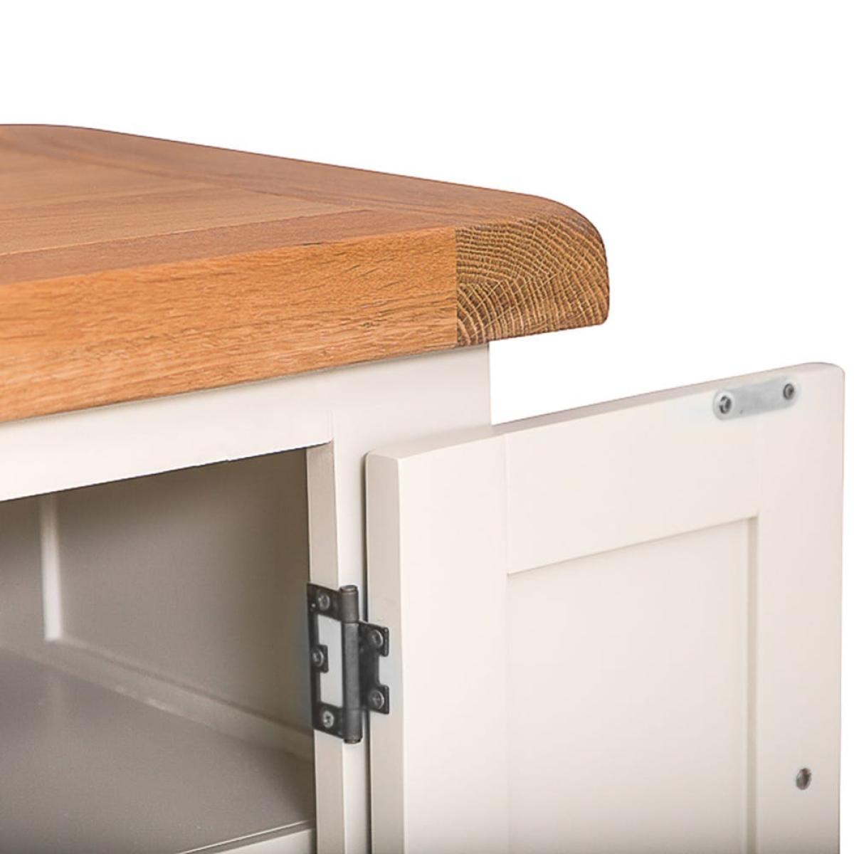 I love this little TV stand because of its versatile design and soft, neutral tones that can brighten up a range of interiors. Its ivory painted finish paired with the warm oak top creates a relaxed, understated look that works especially well in cosy living rooms or country-style spaces. It’s practical too, with enough room for media devices and some stylish accessories, making it ideal for compact spaces or as a feature against a neutral or pastel wall. When styling, consider adding a mix of decorative vases, candles, or books to soften its utilitarian vibe. Keep the overall colour palette light and natural to enhance its gentle, calming aesthetic.