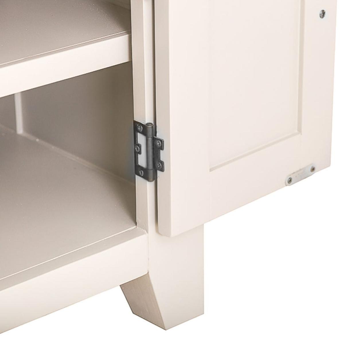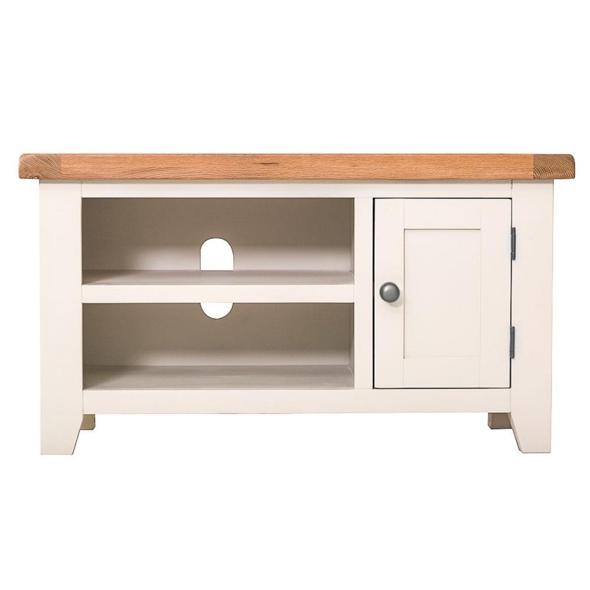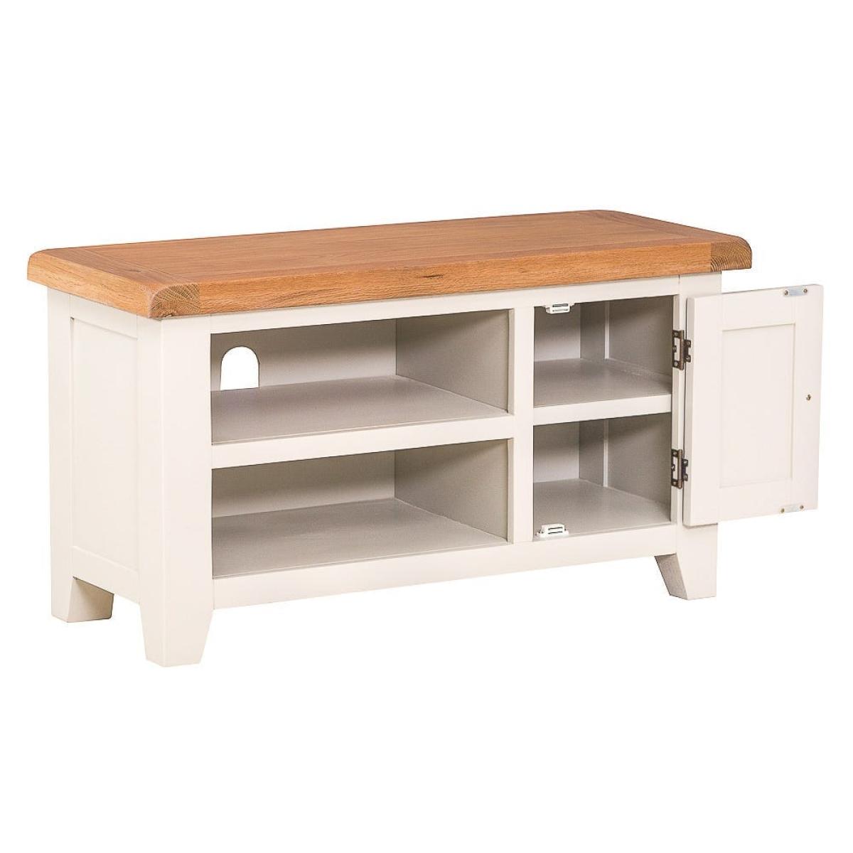 I love this little TV stand because of its versatile design and soft, neutral tones that can brighten up a range of interiors. Its ivory painted finish paired with the warm oak top creates a relaxed, understated look that works especially well in cosy living rooms or country-style spaces. It’s practical too, with enough room for media devices and some stylish accessories, making it ideal for compact spaces or as a feature against a neutral or pastel wall. When styling, consider adding a mix of decorative vases, candles, or books to soften its utilitarian vibe. Keep the overall colour palette light and natural to enhance its gentle, calming aesthetic.
