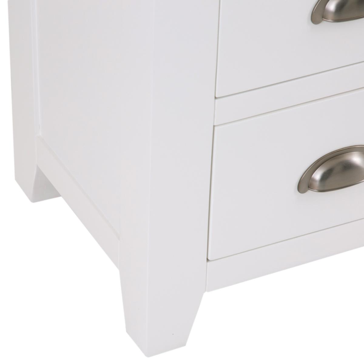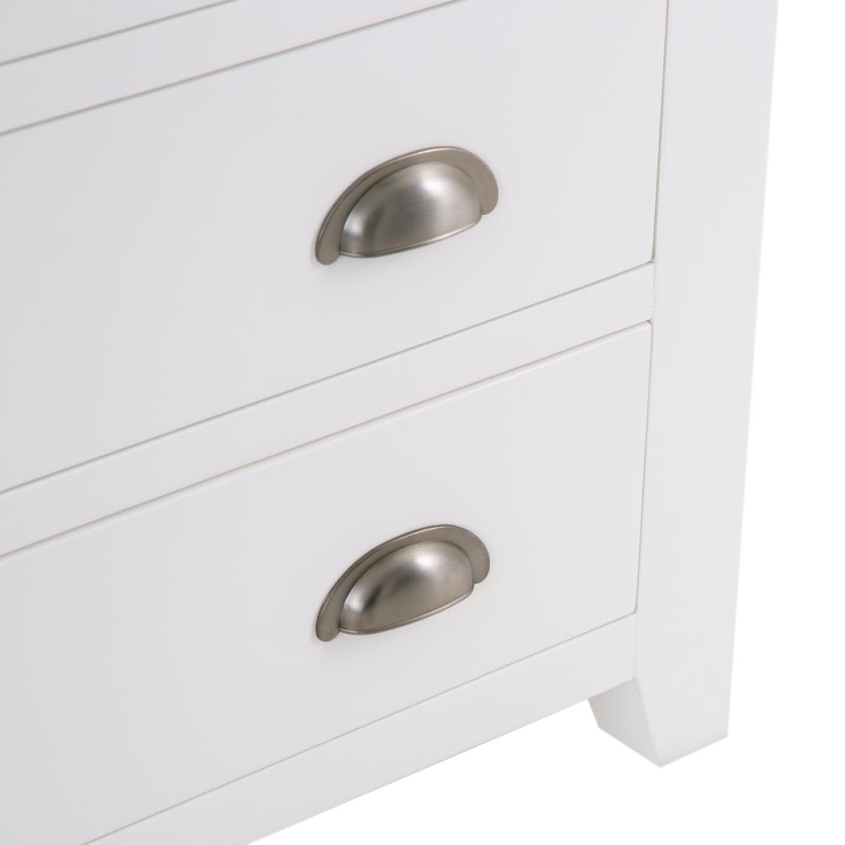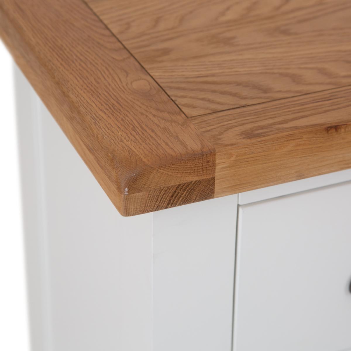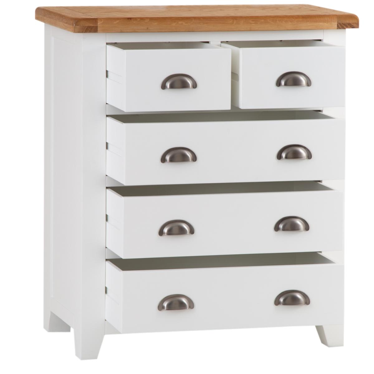 Treat your bedroom to an inspired finishing touch with a little help from the Hampshire White Painted Oak 2 Over 3 Chest. It's a stunning display of master craftsmanship that will take pride of place in any home, and all whilst adding the sought after farmhouse touch that's so in right now. Thick and chunky lines combine with the graceful white painted finish to create a Chest of Drawers that catch the eye from any angle. Look closer and you'll appreciate the way in which the drawers are brought to life by the contemporary twist of the cupped handles. Everything is then finished in style by the chunky oak top.