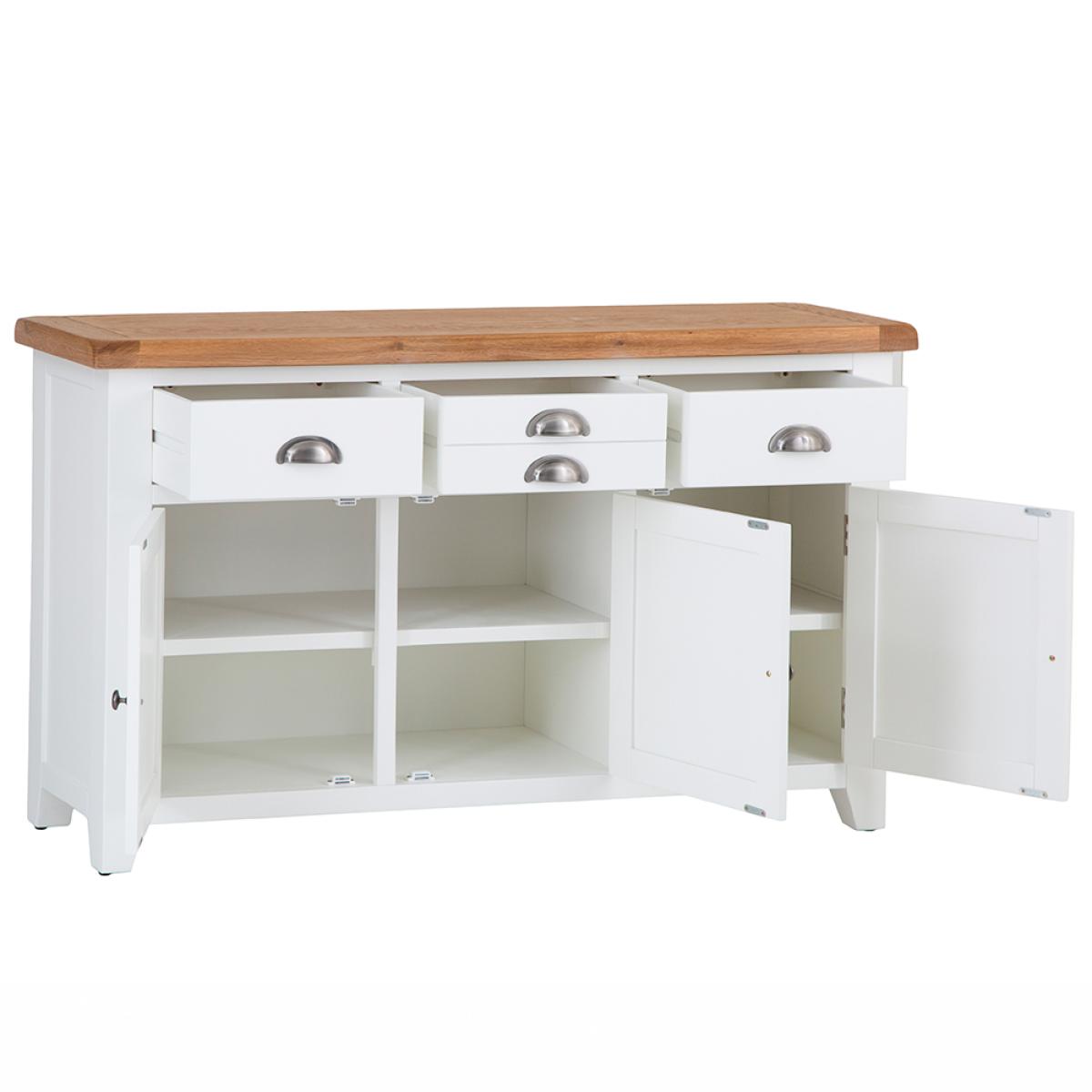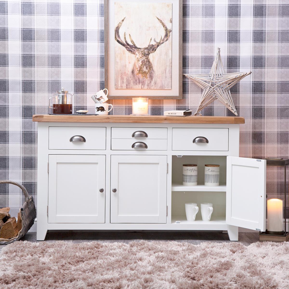 Looking for a way to transform that bare wall in the dining room? We thought so, which is why we created the stunning Hampshire White Painted Oak 3 Door Large Sideboard just for you. It’s the artisan masterpiece your home has been waiting for, and because our 2-man delivery team will take care of all the heavy lifting so you don’t have to, all you’ll need to worry about is what to dress it with. With more space than your old Storage Cabinet, it gives you options to go alongside the undoubted style. Perfect for complimenting the white painted finish and elegant metal handles the range is known for.
