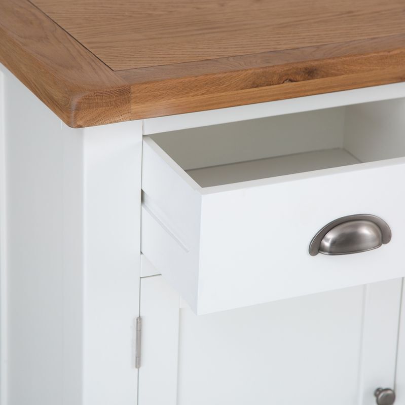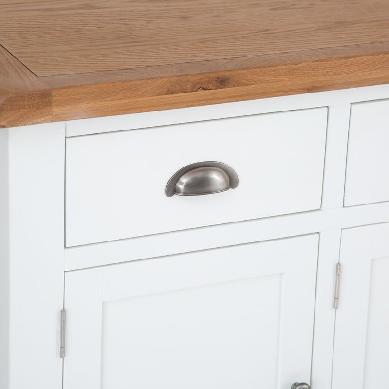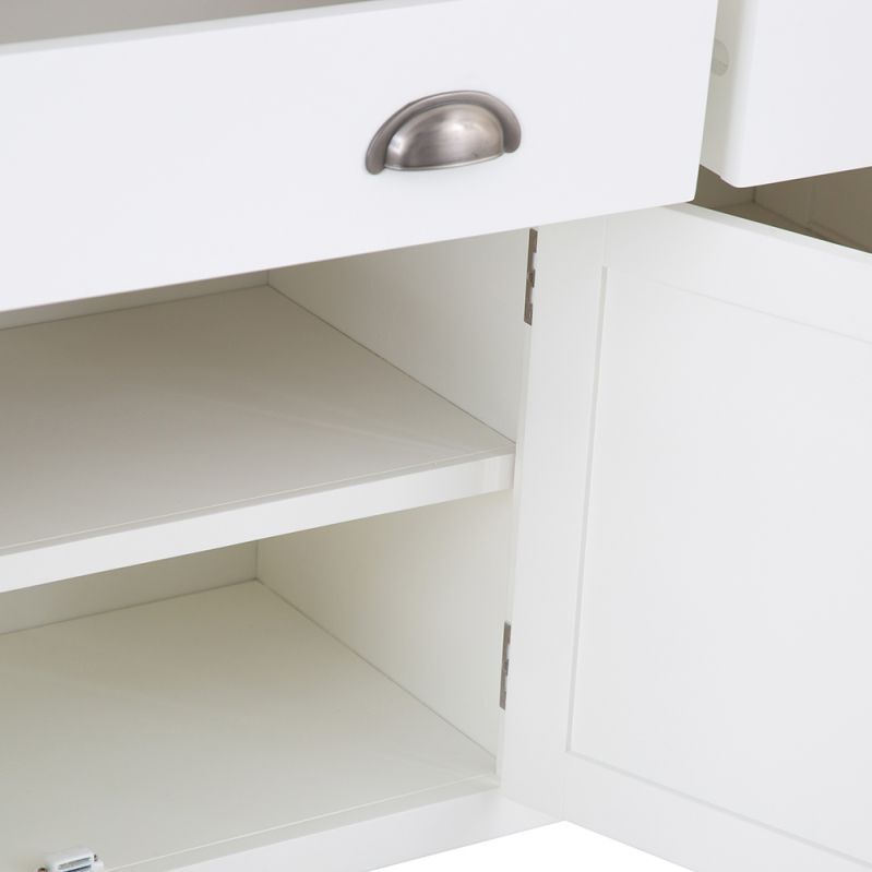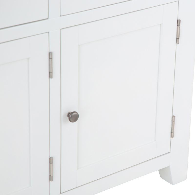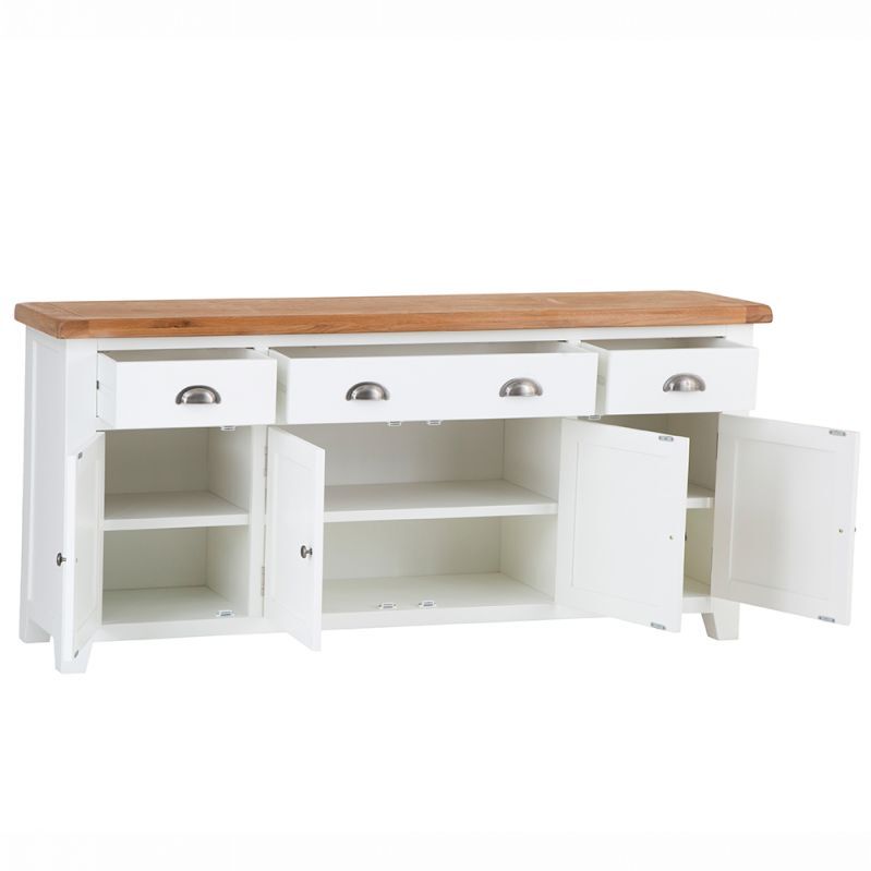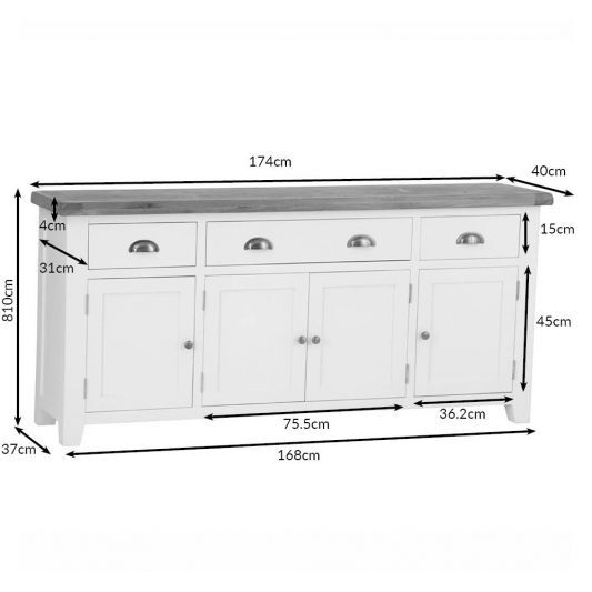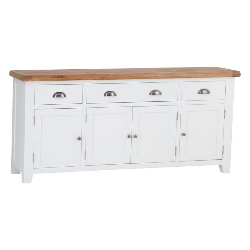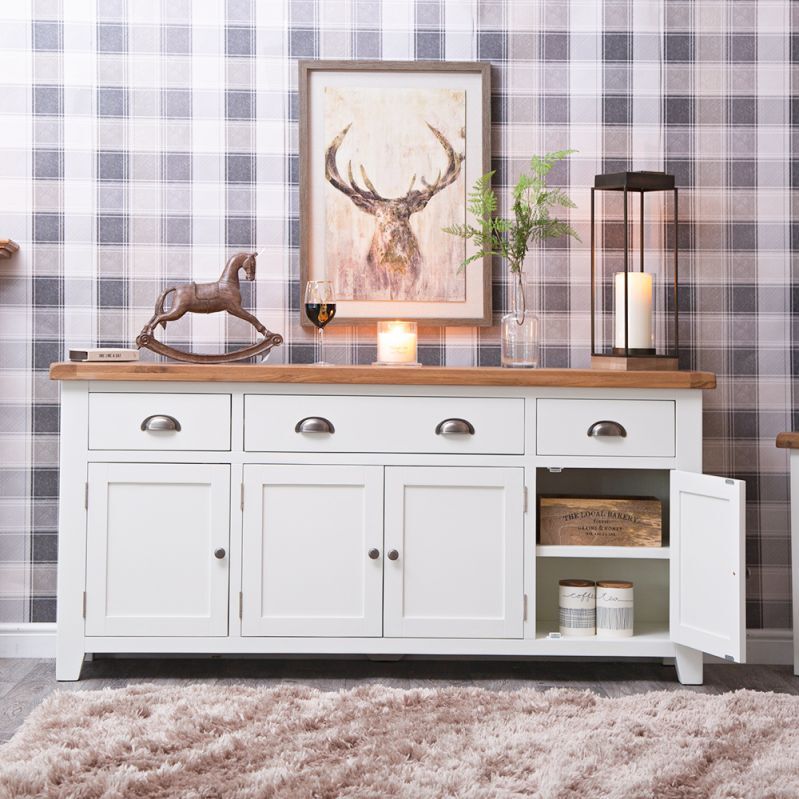 Could there be a better way to dress your dining room to impress than by adding the Hampshire White Painted Oak 4 Door Extra Large Sideboard to the mix? That's the question we asked ourselves, and when we saw the first of our new Storage Units arrive, we were left in no doubt that we'd created something rather special. The dovetailed drawers, tapered legs, and oak top all work in perfect harmony, providing the finishing touches which allow the white painted finish to take centre stage. All you need to do now is decide what you want to add to the top so you can create the stunning new addition you've been searching for.