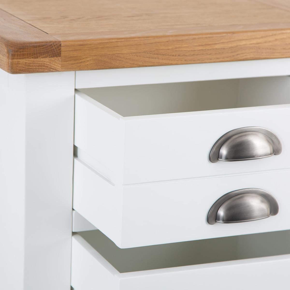 Everybody is craving farmhouse-style furniture at the moment and we're only too happy to provide it. After all, who doesn't love white painted furniture with an oak top? Introducing the latest painted offering - Hampshire White Painted Oak - a collection that proves beyond all reasonable doubt that high end, high quality furniture can be affordable for all. Introduced following the success of the Hampshire Grey and Hampshire Ivory Collections, this stunning Collection of white painted Bedroom furniture is bang on trend thanks to the chrome cup handle that contrasts beautifully against the chunky white painted frame. The oak top, which is far chunkier than similar alternatives, merely exacerbates the country/farmhouse appeal and provides the finishing touch to a marvellous range of white furniture that oozes class. We truly believe that all of the Hampshire Collections offer almost unbelievable value the money and as always our prices are the lowest in the UK. The Hampshire Collections are available from Chiltern Oak Furniture in Grey, Ivory, White and Blue.