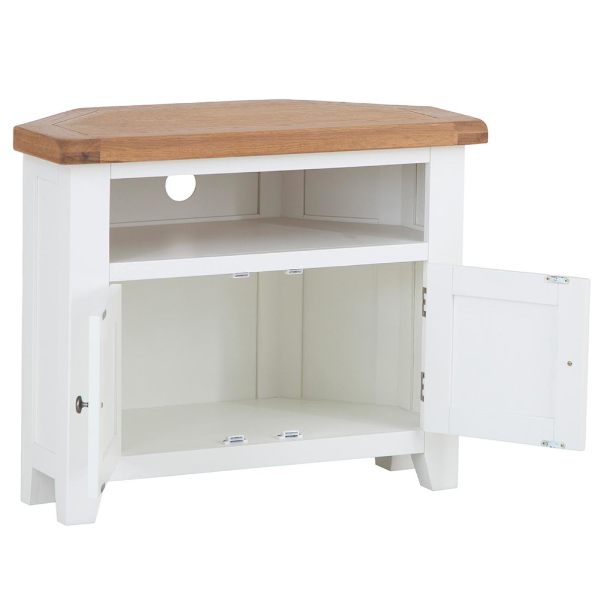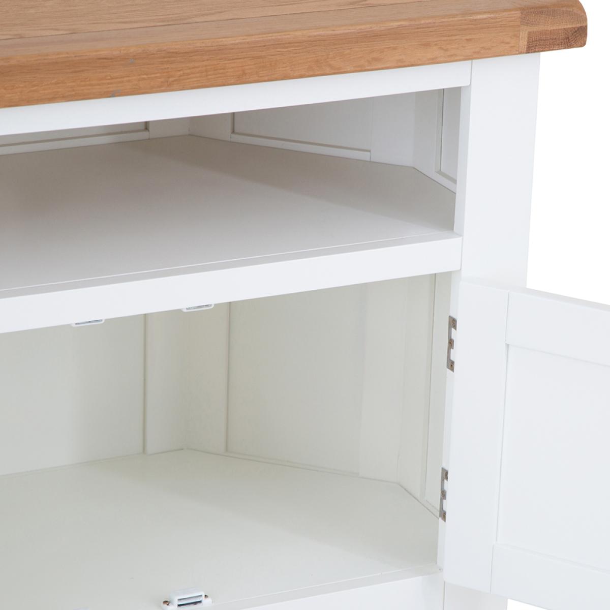 Make the most of your space and add some farmhouse style to your home with the click of a button thanks to the Hampshire White Painted Oak Corner TV Unit. It’s the compact, beautifully made TV Unit you’ve spent a lifetime waiting for, and it’s ready and waiting to make its way direct to your door. All you have to do is clear a spot, let our 2-man delivery team drop it off, and then get busy adding all those homely touches that welcome it into your space. Perfect for sitting back and enjoying the elegant contrast between the light oak top and white painted finish.