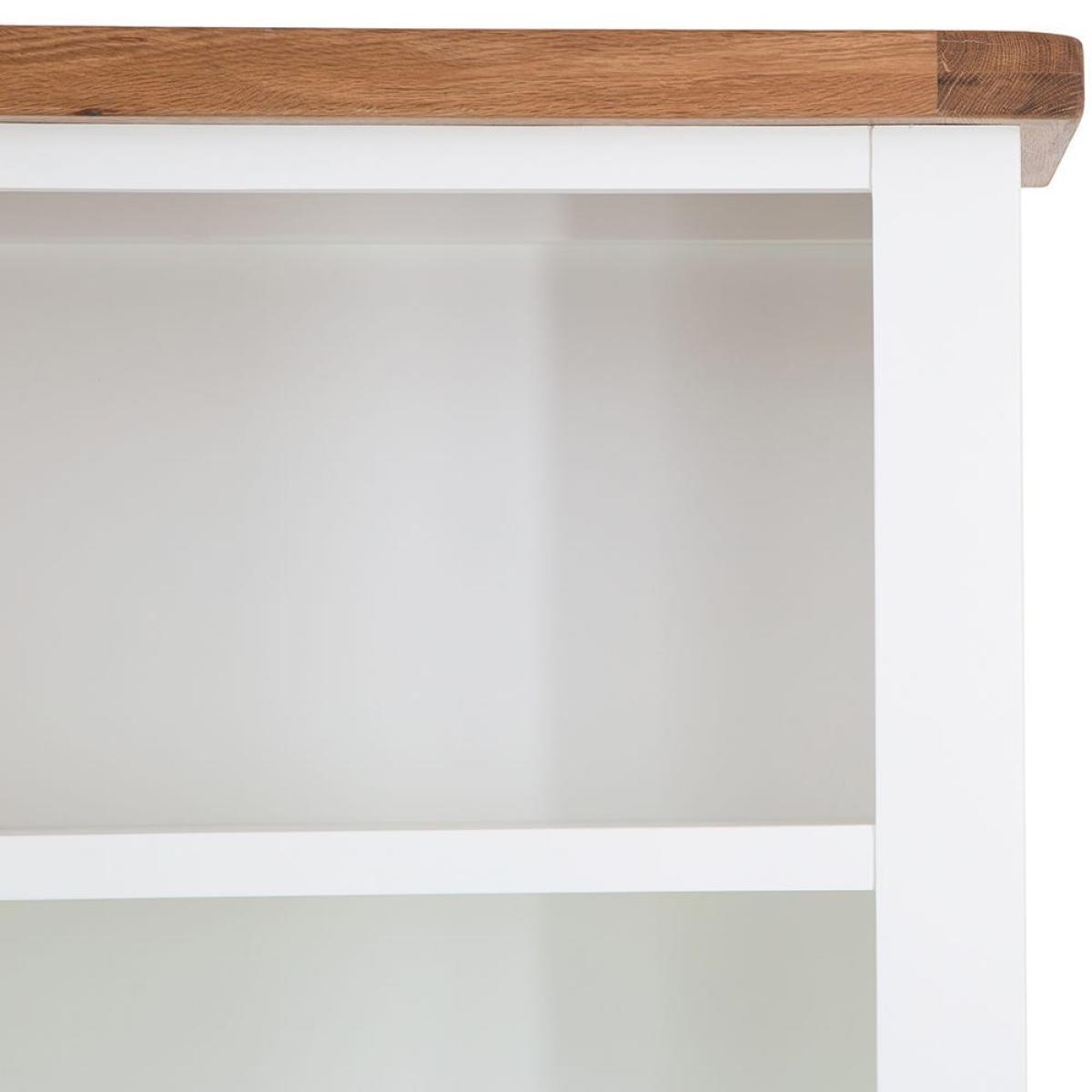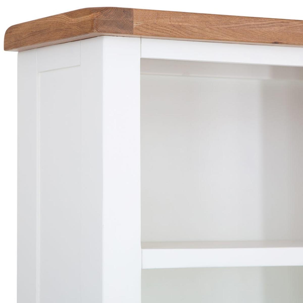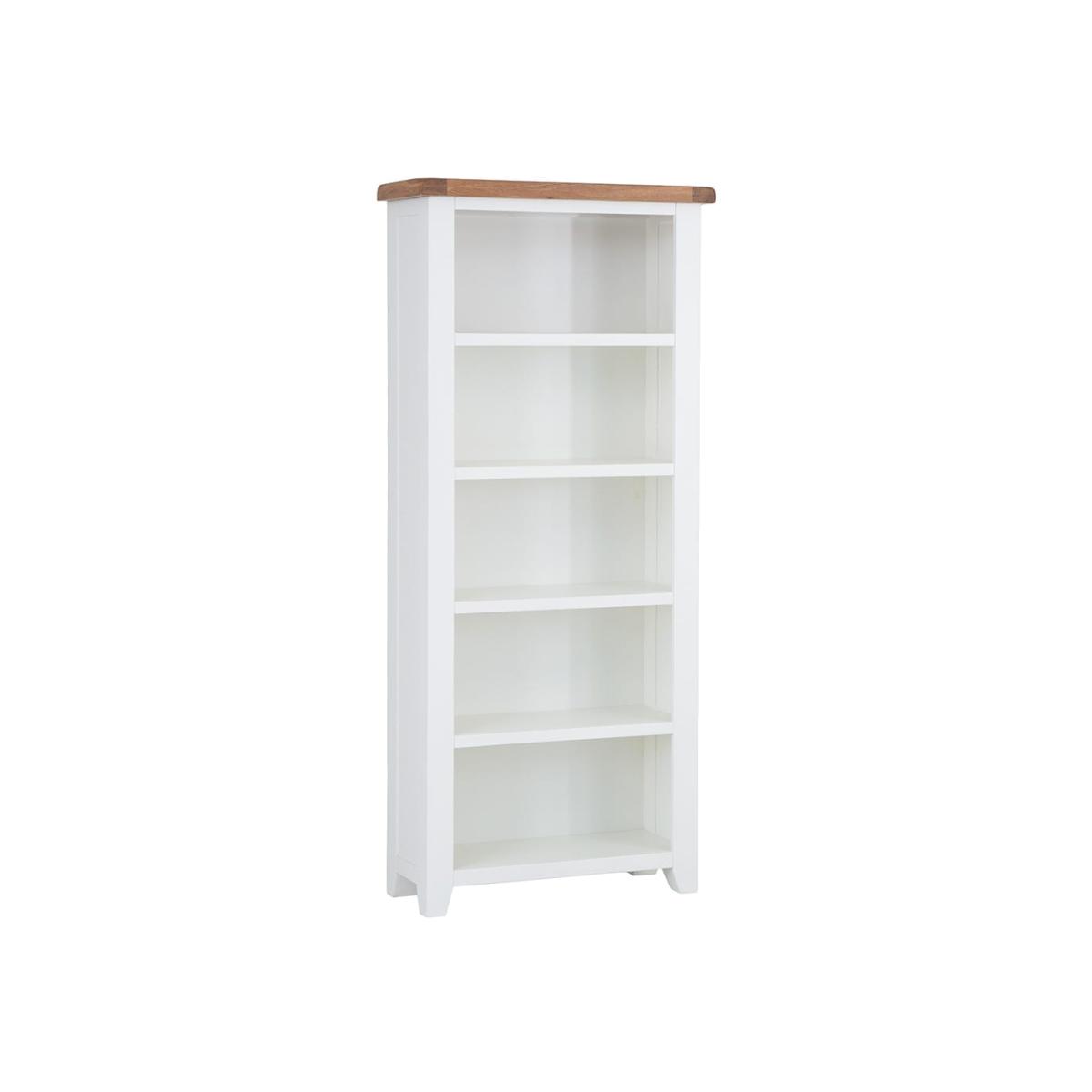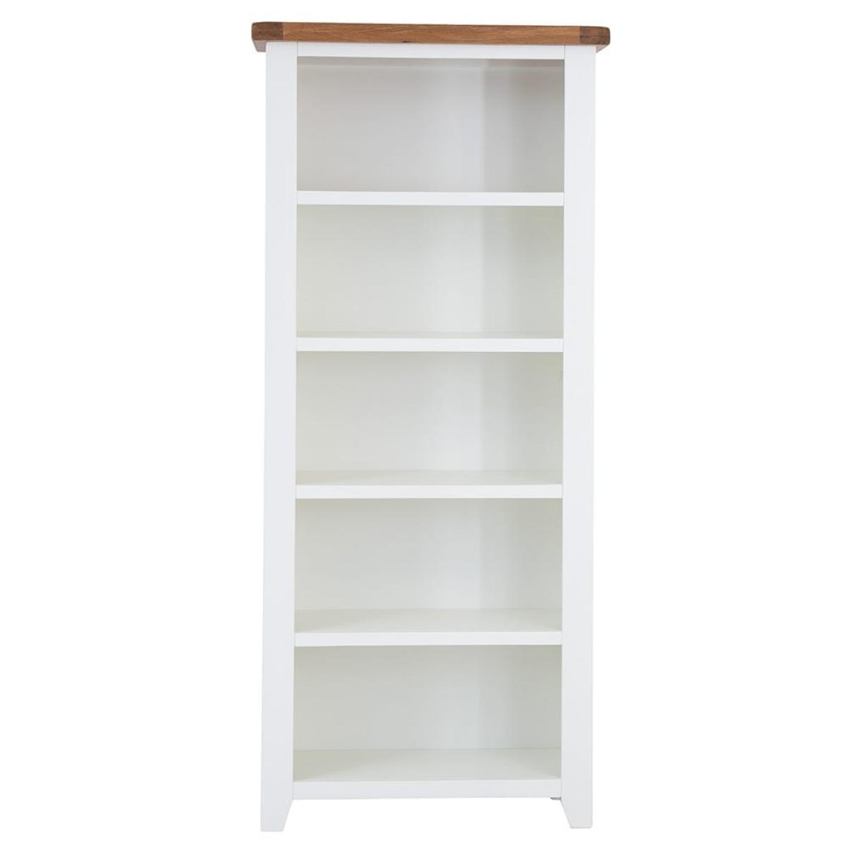 I love this tall bookcase because of its clean, versatile look and neutral palette, making it easy to style in a range of interiors. The white painted finish keeps things fresh and pairs well with both modern and more traditional schemes, while the oak top adds warmth and a natural touch. It's perfect for living rooms, home offices, or bedrooms where you want to keep books, decorative objects, or plants on display. For practical styling, consider grouping books by colour or size for a streamlined look, adding some decorative boxes or baskets to hide clutter, and layering a few statement accessories on the top shelf to personalise the space. Its sizeable height provides plenty of storage without overwhelming the room, making it a functional yet stylish addition.