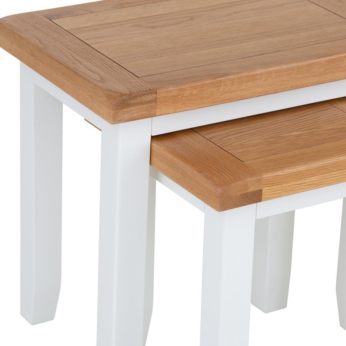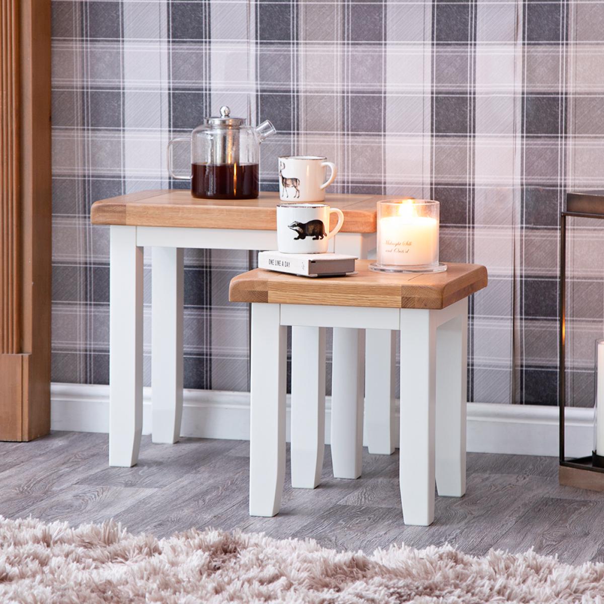 Dressing your home to impress has never been easier thanks to our Hampshire White Painted Oak Nest of 2 Tables. It’s the finishing touch every farmhouse style space has been waiting for, and it’s perfect for adding that little something extra that can be so hard to find these days. With your Side Tables taking pride of place in their own little corner of the lounge or dining room, you’ll have the perfect combination of style and substance at your disposal. Ideal for enjoying the vibrant white painted finish and oak top as they fit seamlessly into the existing decor.