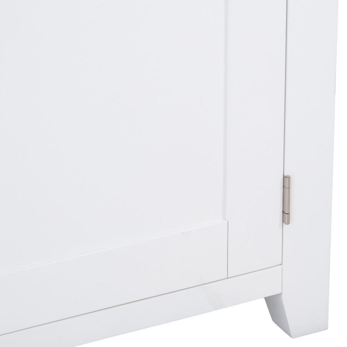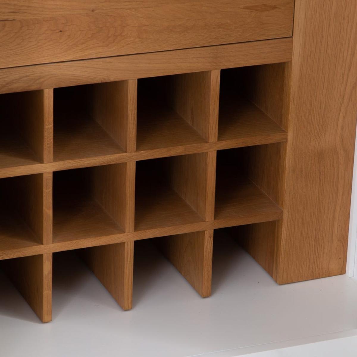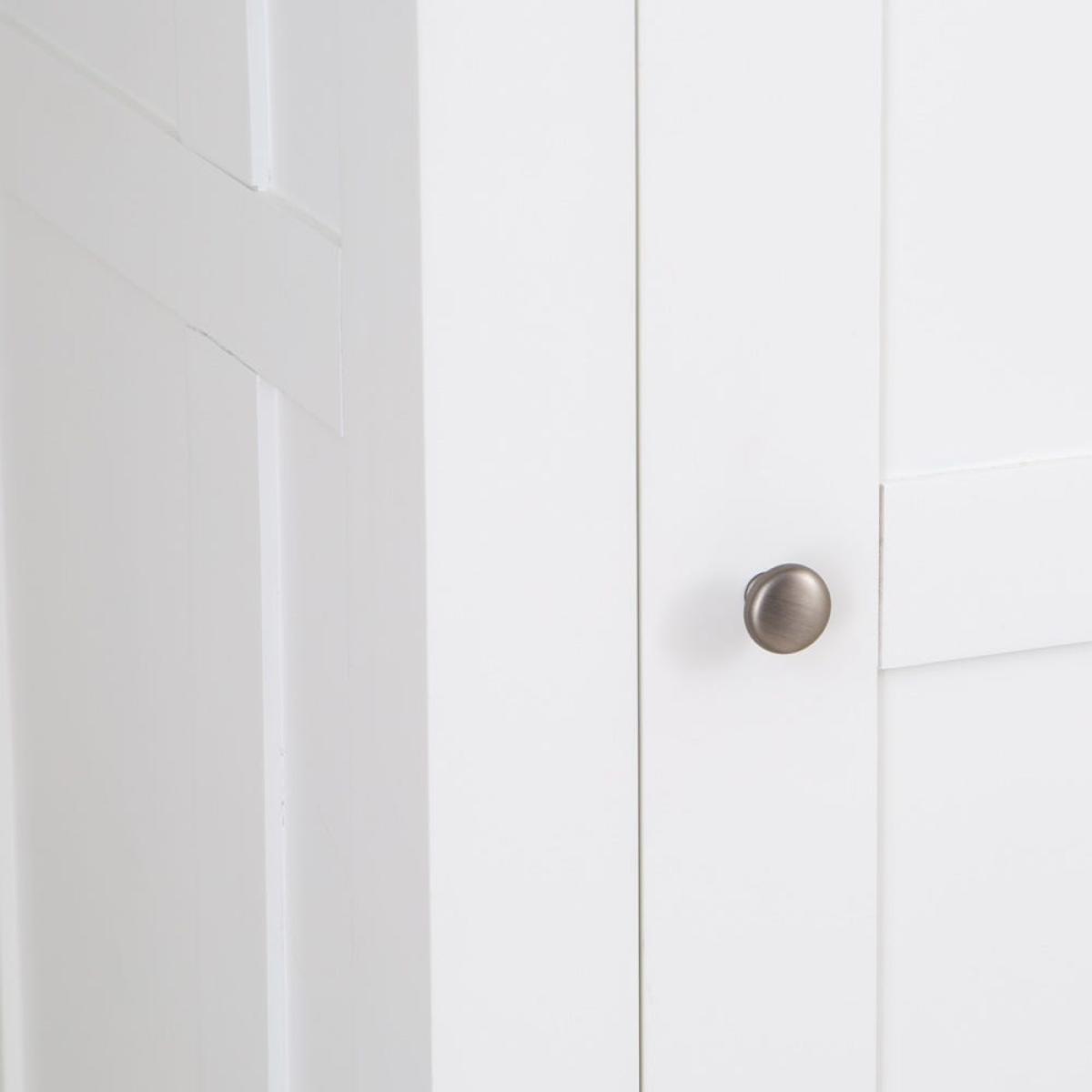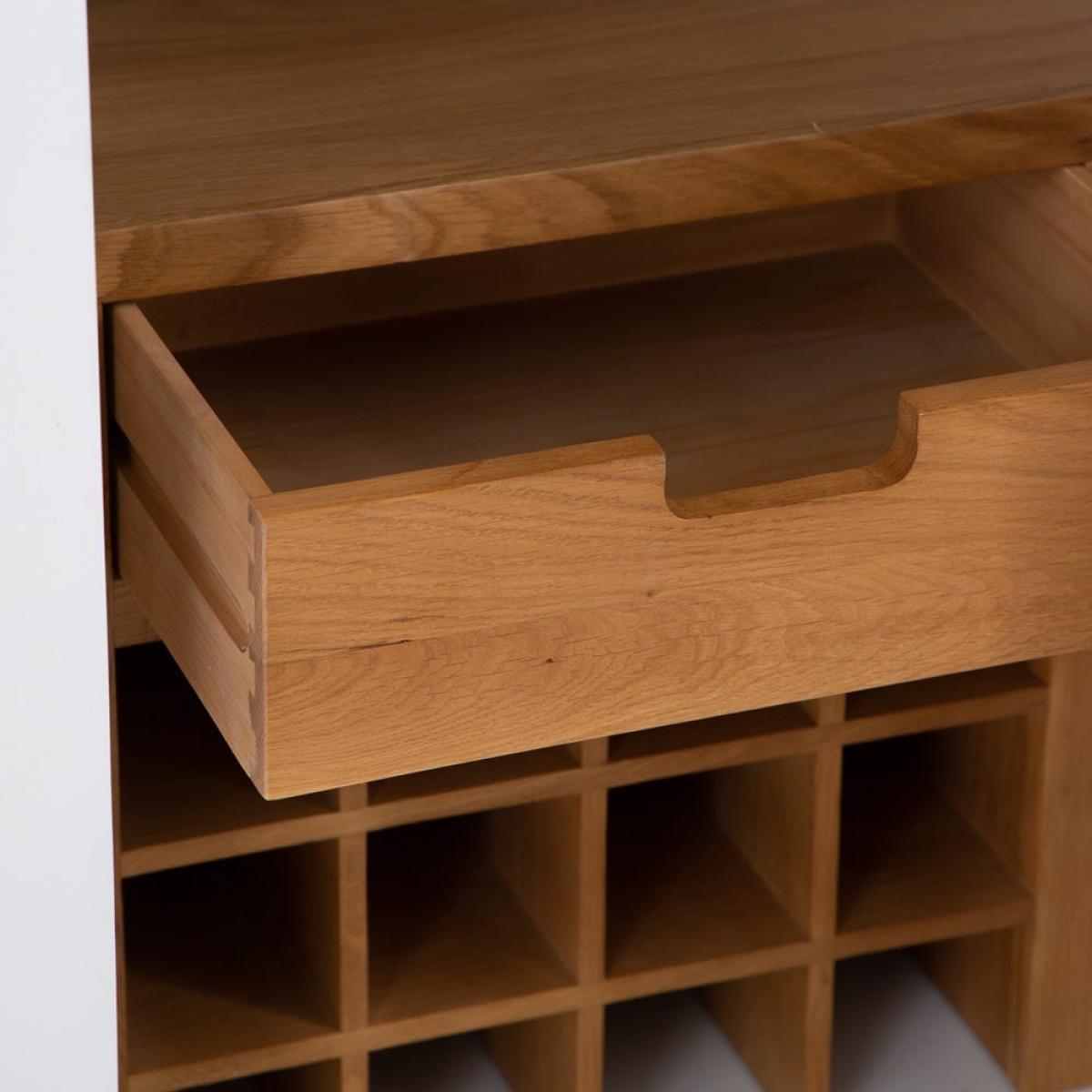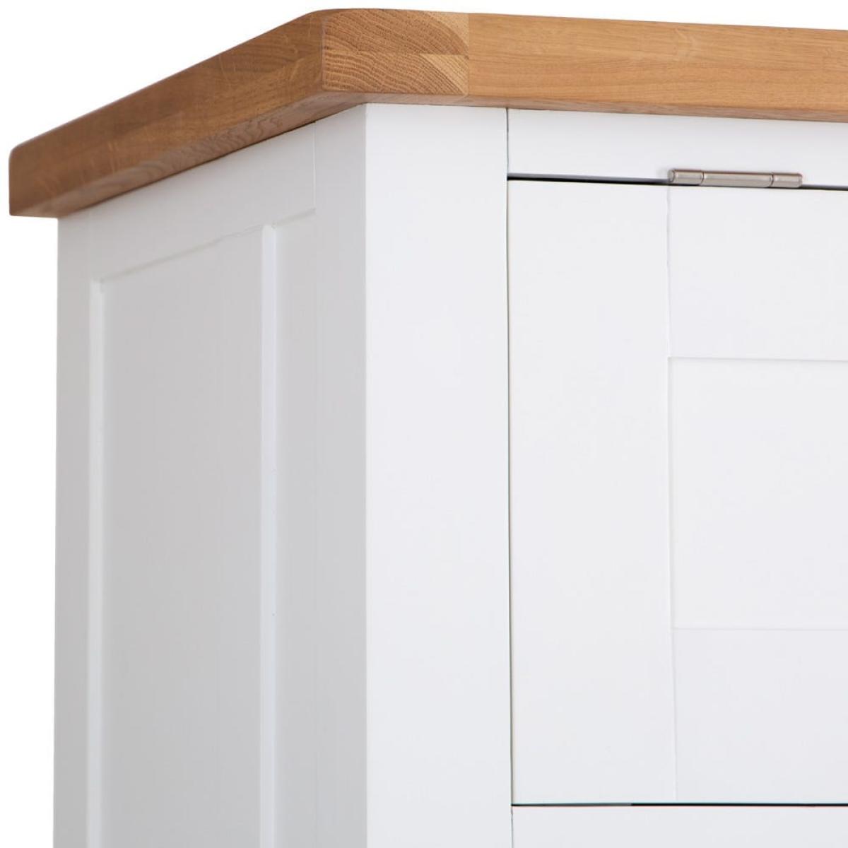 Maximise your kitchen space with this Hampshire white painted oak slim larder cupboard. It’s the perfect size to sit alongside your fitted units, and has plenty of clever features that mean you’ll always look forward to putting away the weekly shop. A spacious drawer is ideal for wooden spoons and spatulas, and sits above a wine-rack that can hold up to 12 bottles. The main shelves are adjustable or removable for large jars and bottles, and the door compartments are ideal for condiments and relishes. The oak interior enhances our breezy white, with tapered legs softening the sturdy frame. Please note:This item is not pure/brilliant White. It is an off-white, described as ‘antique white’.