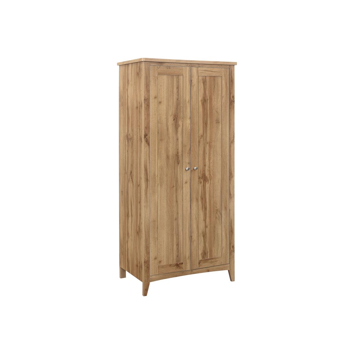 The Hampstead range boasts a classic and timeless design which will complement both traditional and contemporary dcor. The Hampstead highlights the prominent grain of the wood creating a rustic homely feel. The range is constructed from particleboard with a paper laminated finish. This 2-door wardrobe is spacious behind double doors, featuring a single rail, ideal for organising clothing. Care instructions Wipe carefully with a soft, dry cloth.