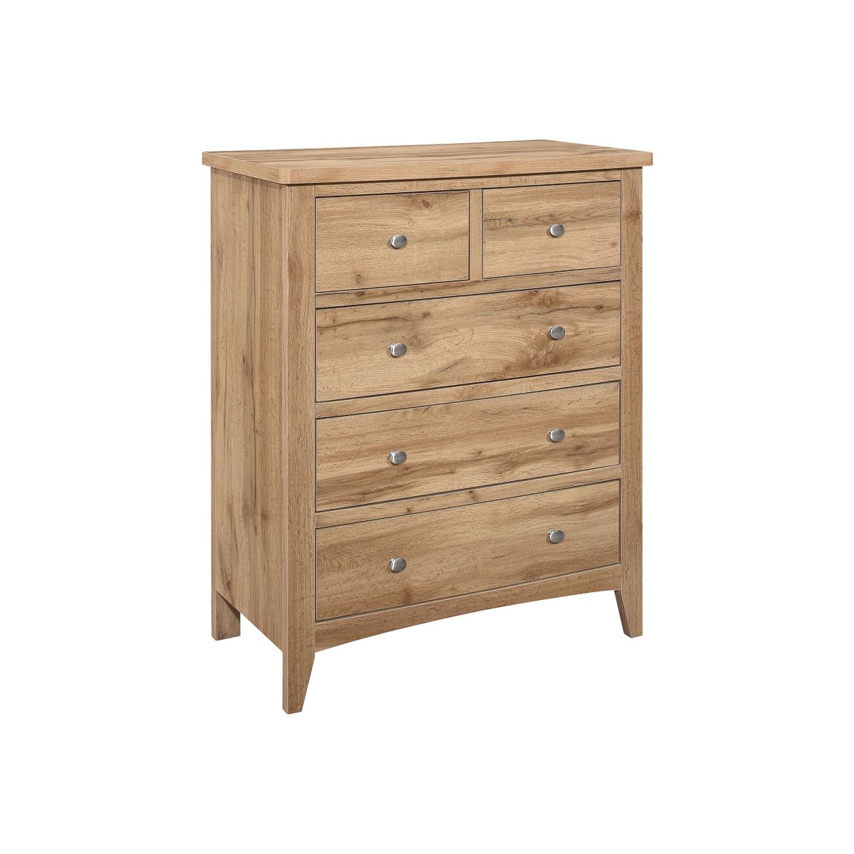 The Hampstead range boasts a classic and timeless design which will complement both traditional and contemporary dcor. The Hampstead highlights the prominent grain of the wood creating a rustic homely feel. The Hampstead highlights the prominent grain of the wood creating a rustic homely feel. The range is constructed from particleboard with a paper laminated finish. Featuring three large drawers and two smaller drawers, this 32 chest provides a generous amount of space to store clothes, linens and accessories. Care instructions Wipe carefully with a soft, dry cloth.