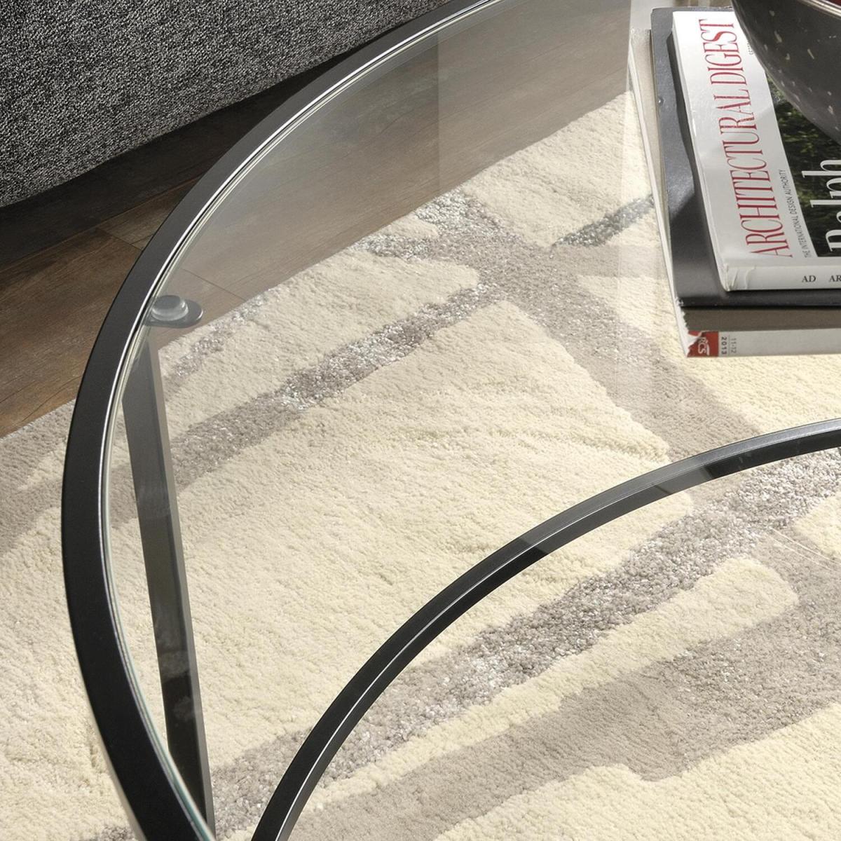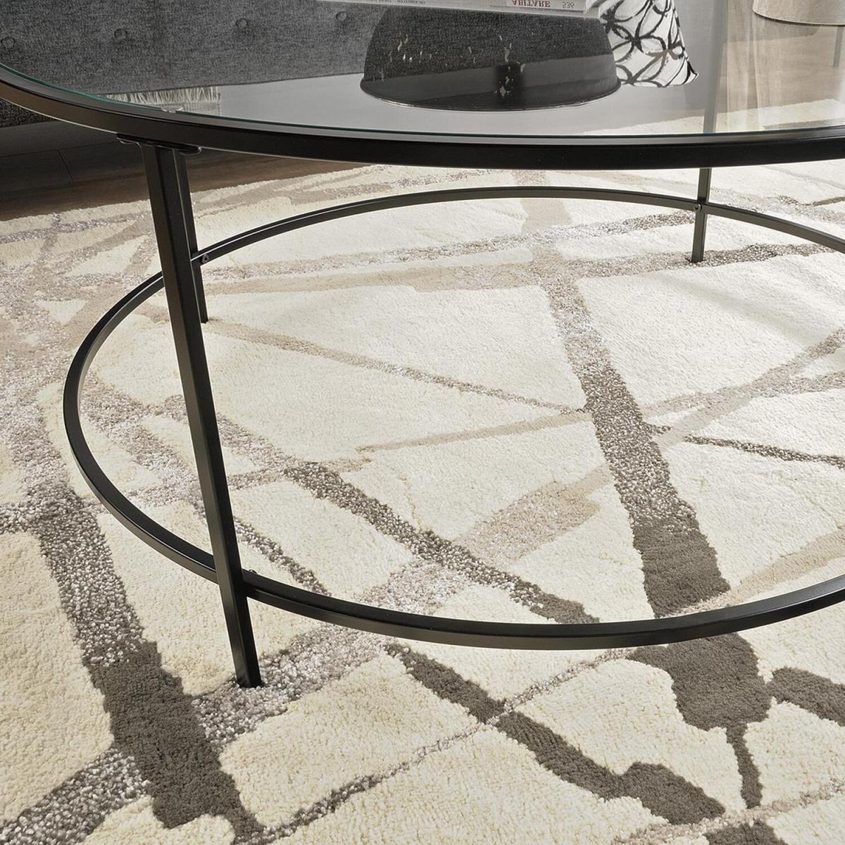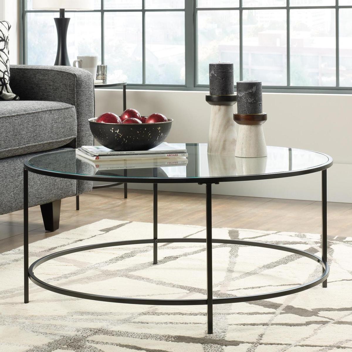 Teknik Office Hampstead Park Coffee Table with circular coffee table with a safety-tempered glass top and durable black metal frame for stability.