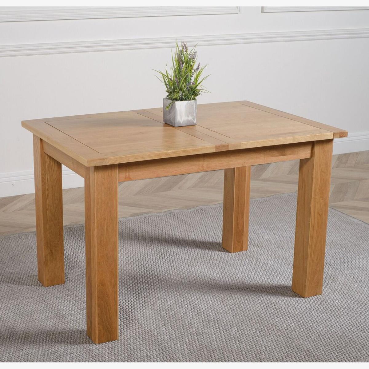 pThe clean, timeless look of this dinner table will fit seamlessly into both classic and modern interiors. The solid oak timbers used in the construction of this wooden dining table have been skilfully selected, delivering beautiful unbroken lines. The fine grain typical of oak ensures that this small wooden table will age beautifully, developing patina and gracious character in years to come.pp. This beautifully designed narrow table is fitted with a sturdy and easy to use centre extension panel that extends this 4ft table from a compact dining table 4 seater, to a comfortable 6 seater measuring 160cm in length, making it the perfect extending dining room table for everyday use. When not in use the extension panel for this small kitchen dining table stores neatly under the table top.pp. Rest assured that the Hampton table is made of solid oak wood, no lamination, veneer or MDF is used in its construction. After many years of use this oak table can be sanded to remove any signs of use and re-varnished to appear as it did the day it was first delivered, representing true lifetime value.pp The Hampton Solid Oak Extending Dining Table arrives flat packed with only a small amount of assembly required. Unbox and simply attach the legs with the fittings provided and your table is ready for use, The Hampton solid oak dining table comes with a full 12 month warranty and 30 day no quibble Money Back Guarantee.p
