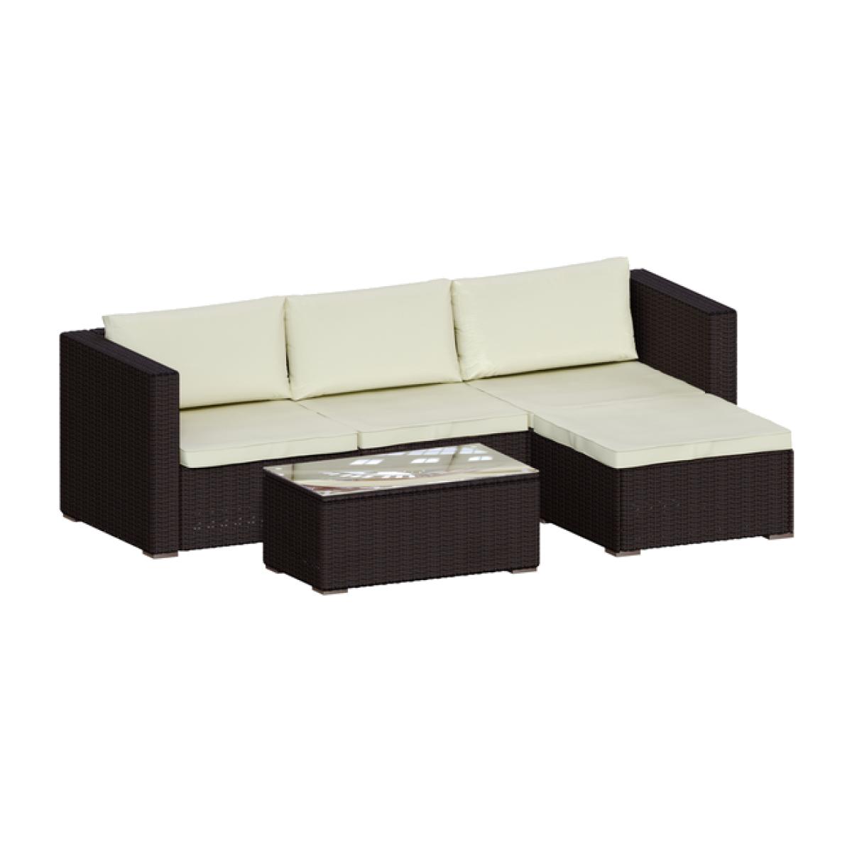 Welcome in your garden this gorgeous Hampton 4 Seater Rattan Set. Placed in the sunny spot it provides seating space for four people and, complemented with comfy cushions, it ensures that everyone enjoys it. Sofas can be arranged in your preferred manner, be it L-shape, lined or even four separate units - there is a way to suit every garden setting.middle sofa:H 63 x W 61 x D 70 cmcorner sofa:H 63 x W 70 x D 70 cmfootstool: H 30 x W 60 x D 60 cm