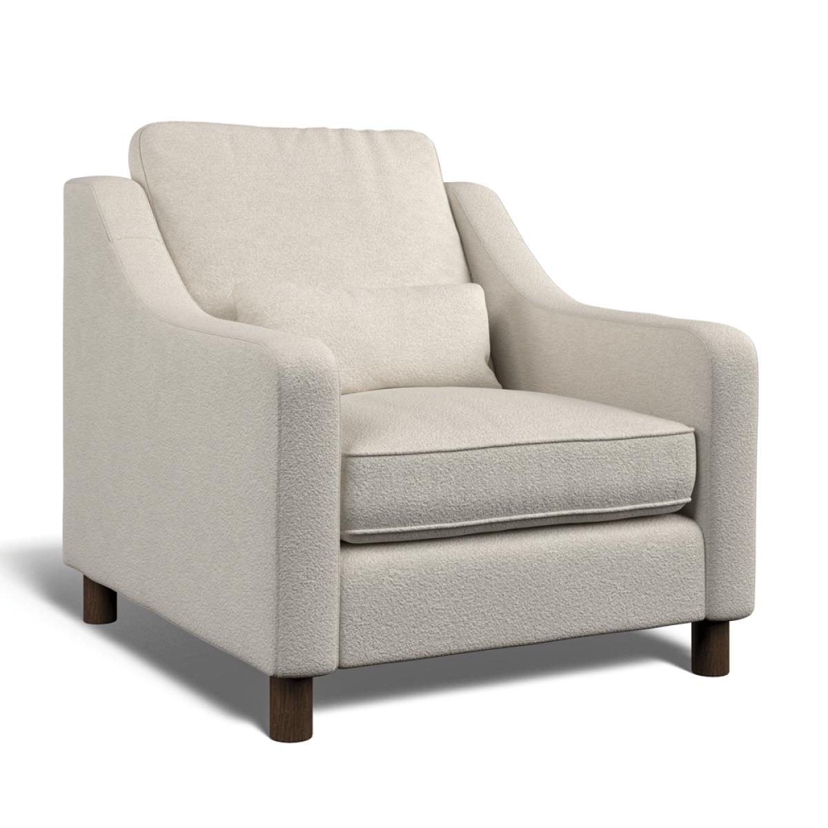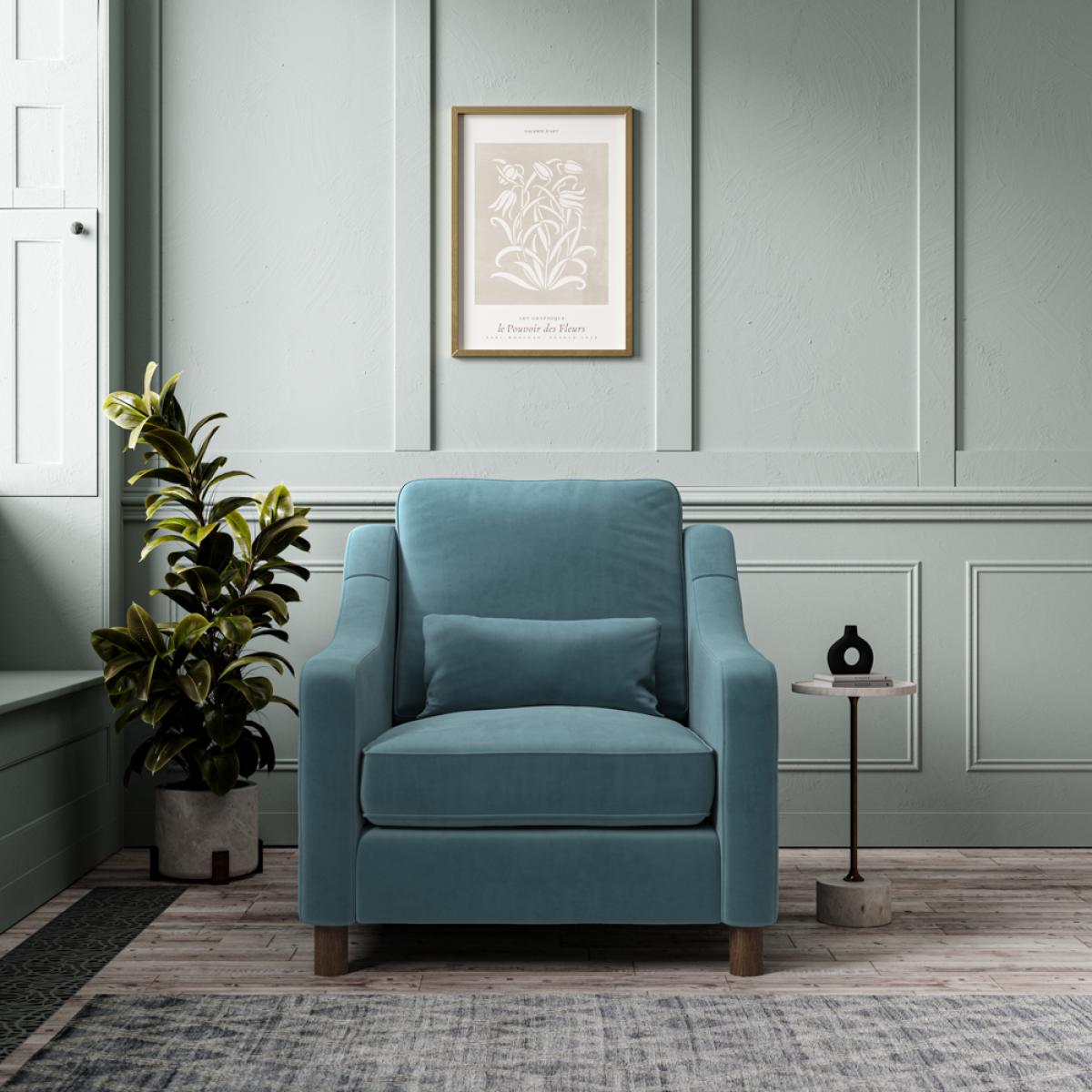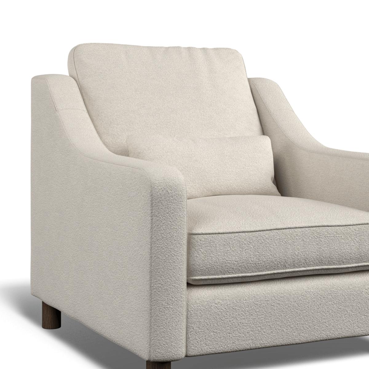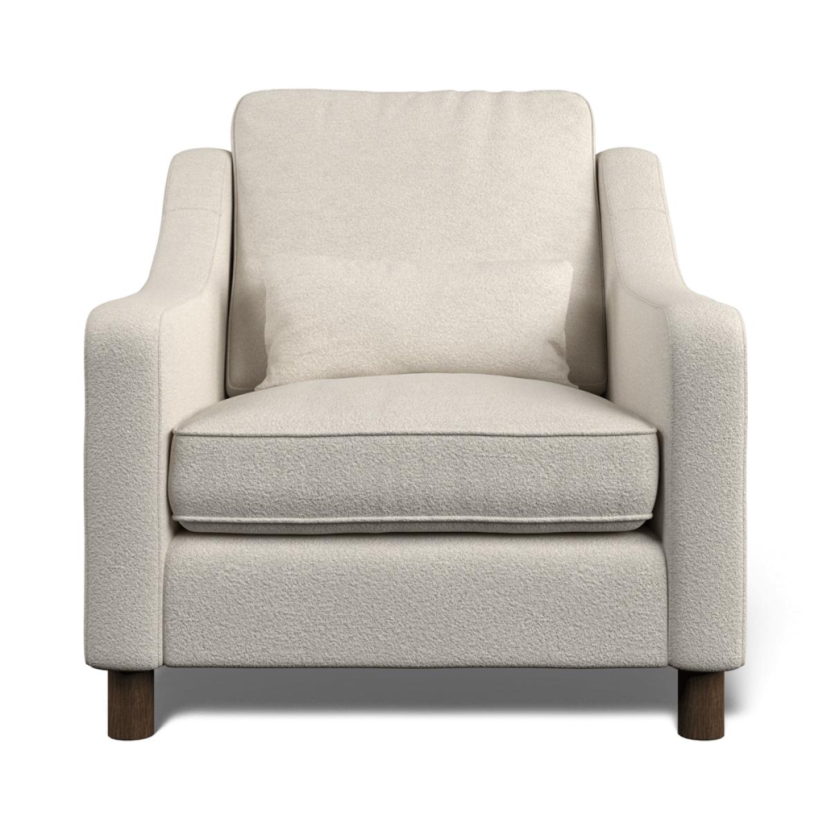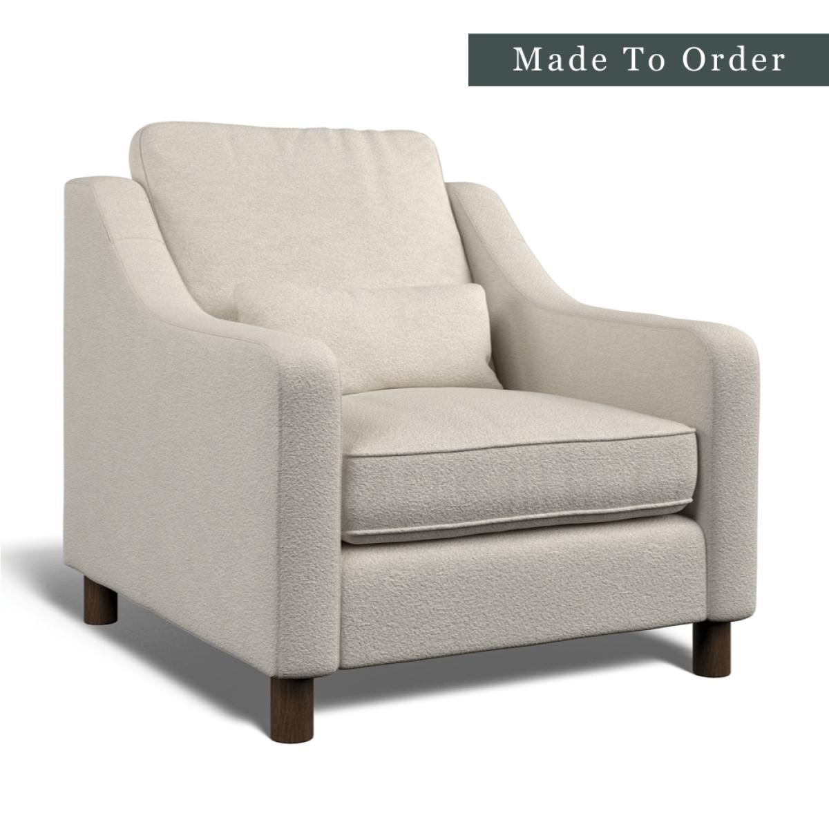 Our Hampton collection of seating is made to be lounged in, and its comfortable, elegant proportions are perfect for any formal or casual living space. This classic style incorporates comfortable high back cushions, swooping armrests, and supportive lumber cushions. It sits on solid beech wood legs. Elegant and timeless, the Hampton armchair offers generous proportions for maximum comfort. This range offers a medium-to-soft supportive ‘sit’, with high back cushions constructed from soft fibre, and seat cushions constructed with a medium density foam core with soft fibre wrap. The scatter cushions are filled with premium European duck feather for a perfectly soft recline. Skilfully produced by master upholsterers in UK using premium materials such as a hardwood frame, which has been glued and screwed for a robust build that will last the test of time. Each armchair is made to order and upholstered in your choice of either Bouclé (2 colours available) or Easy Clean Eco Velvet (8 colours available). Our Sofas and Armchairs are handmade to order in our UK factory.