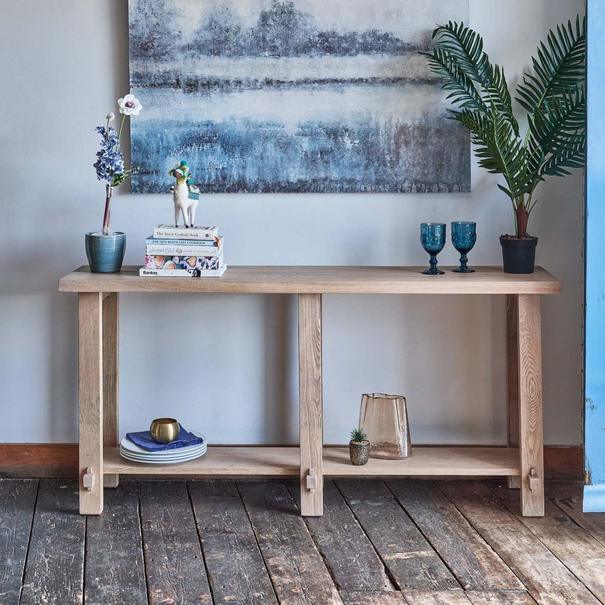 The Hampton Console Table is a beautiful addition to any dining or living space. The sleek, Scandinavian design brings a stylish edge to any room, the wooden material offering a robust surface ideal for family life, while the additional shelving offers an abundance of storage and display space. The sturdy cross-bar on this console table offers both style and support, which is aided by contemporary wooden accents jutting out to the edge of each leg.