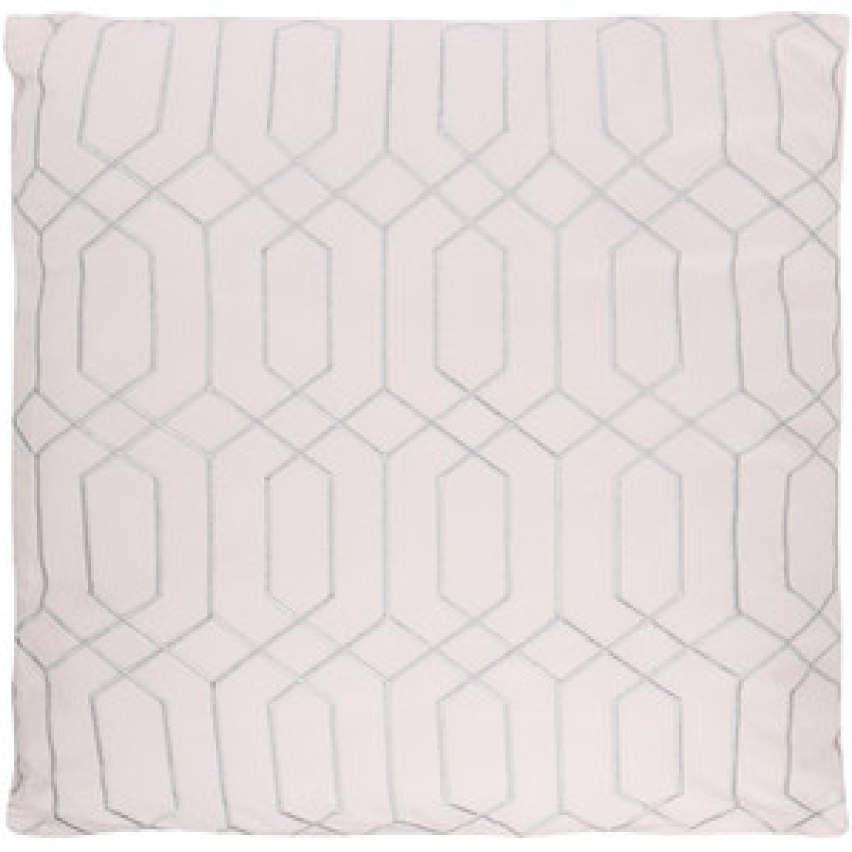I love this cushion for its versatile silver tone and modern geometric embroidery, making it a great addition to both contemporary and minimalist interiors. It works particularly well teamed with neutral sofas or beds, adding a touch of subtle sophistication without overpowering the space. For styling tips, I recommend layering with other textured cushions in varying shades of grey or metallics to create depth, or pairing it with soft throws for a cosy yet chic look. Its clean design and neutral palette make it adaptable for living rooms, bedrooms, or even a stylish office space.