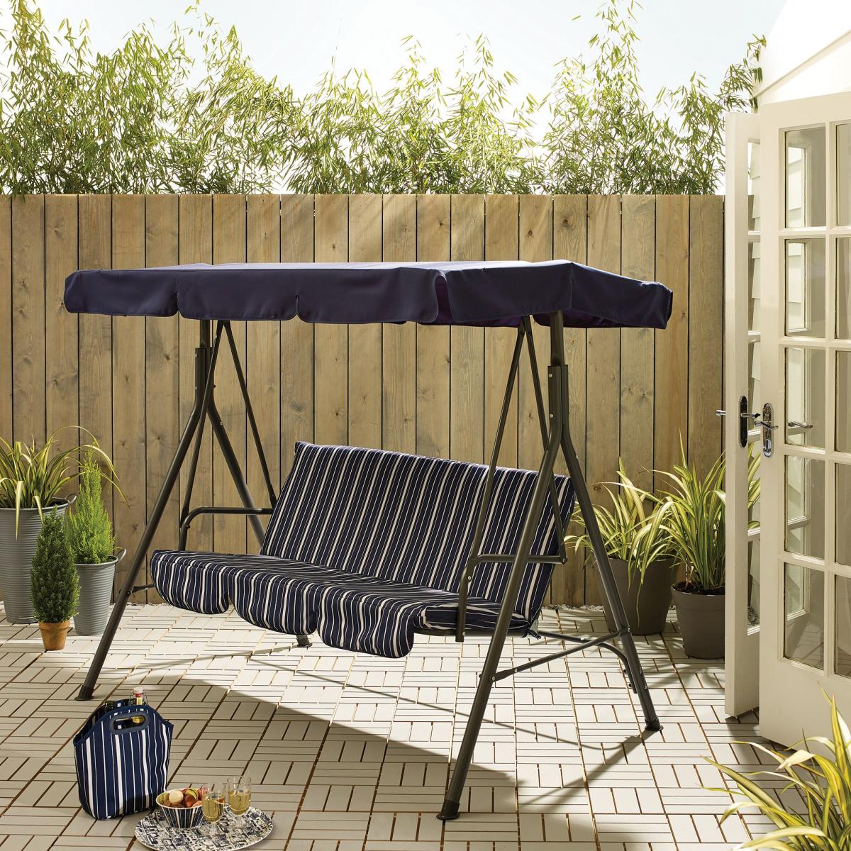Designed in a navy and white stripe pattern this hampton hammock features a canopy that provides protection from the sun whilst allowing you to relax in comfort.