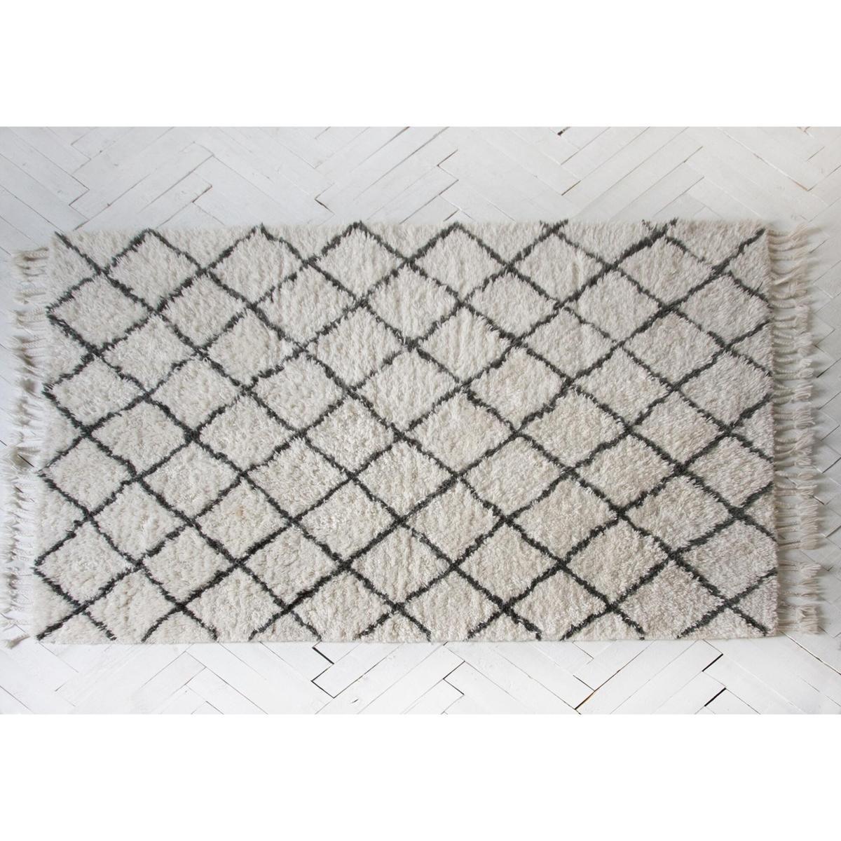 Introduce luxury into to your home with the Hampton wool rug. Crafted from the softest wool fibres, the Hampton is woven to perfection by skilled artisans using traditional techniques. It has a stylish design that draws a grey trellis pattern over a cream background, with matching braided tassels for added detail. The Hampton is a delight to the eyes but also for the soul – simply sink your feet in the high-pile to let the wool help you reconnect with your home and provide you with extraordinary comfort after a long day.