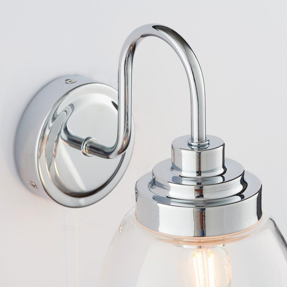 I love this wall light for its sleek, contemporary appeal and practicality in a bathroom setting. The clear glass shade combined with chrome plate creates a clean, minimalist look that works well in modern or industrial interiors. It’s particularly effective when placed beside a mirror or vanity, providing focused task lighting without overwhelming the space. Styling tips include pairing it with other chrome accents or matte finishes for a cohesive look. Its IP44 rating makes it perfect for humid environments, and it suits both minimalist and transitional schemes, adding a touch of understated elegance. Overall, it’s a versatile piece that balances function with stylish simplicity.