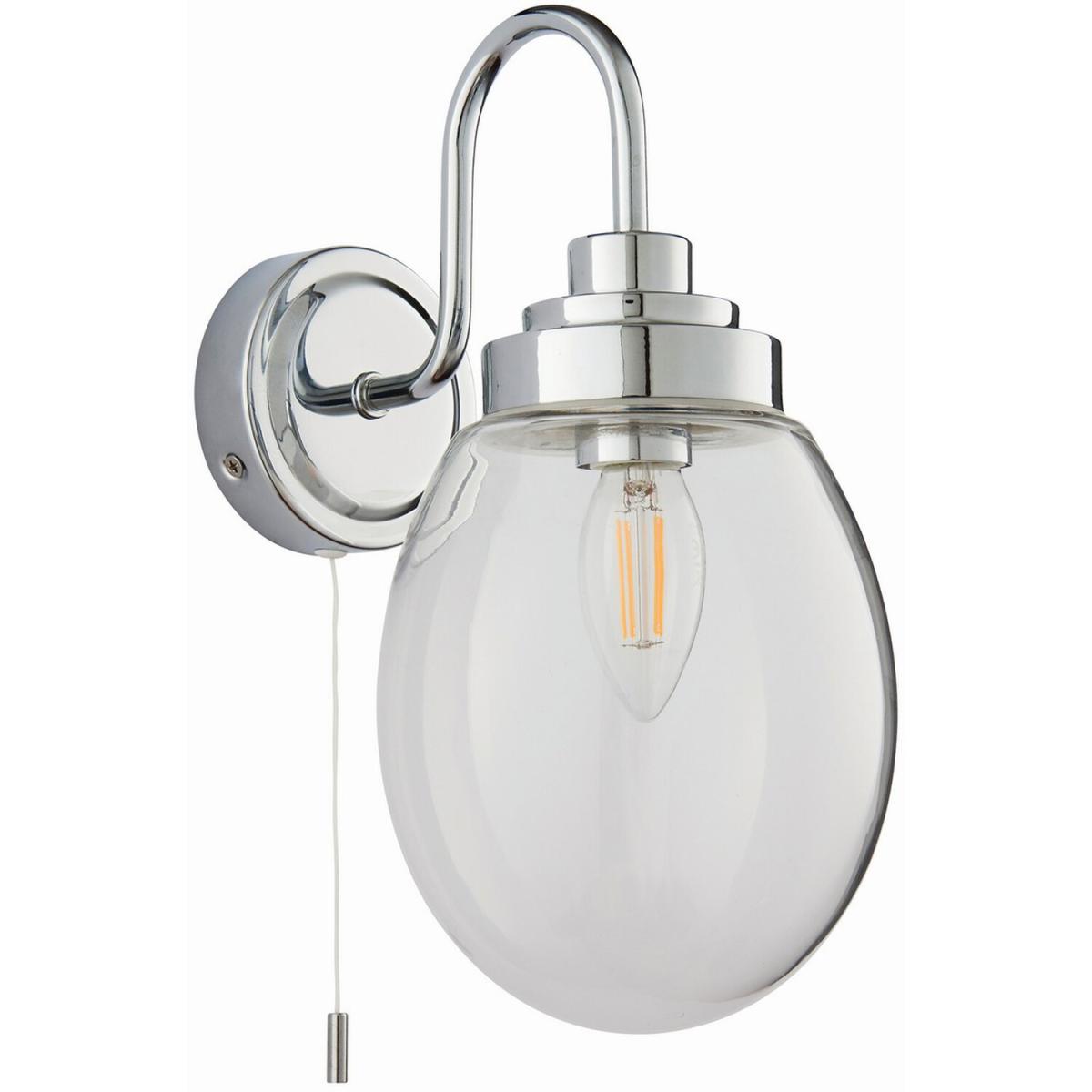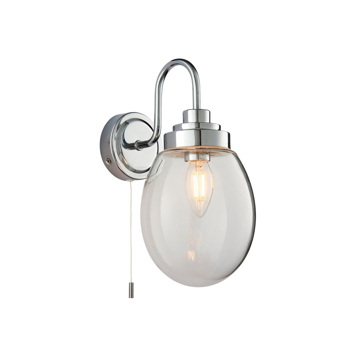 A timeless classic IP44 rated bathroom wall light. Finished in chrome with beautiful clear glass shade. With easy access pull switch, perfect for use with filament LED lamps.
