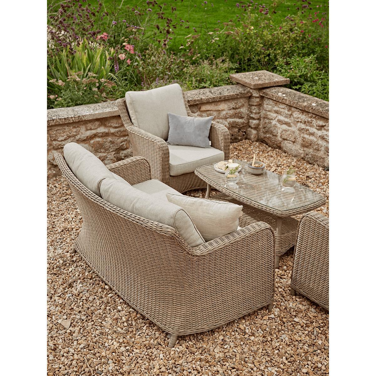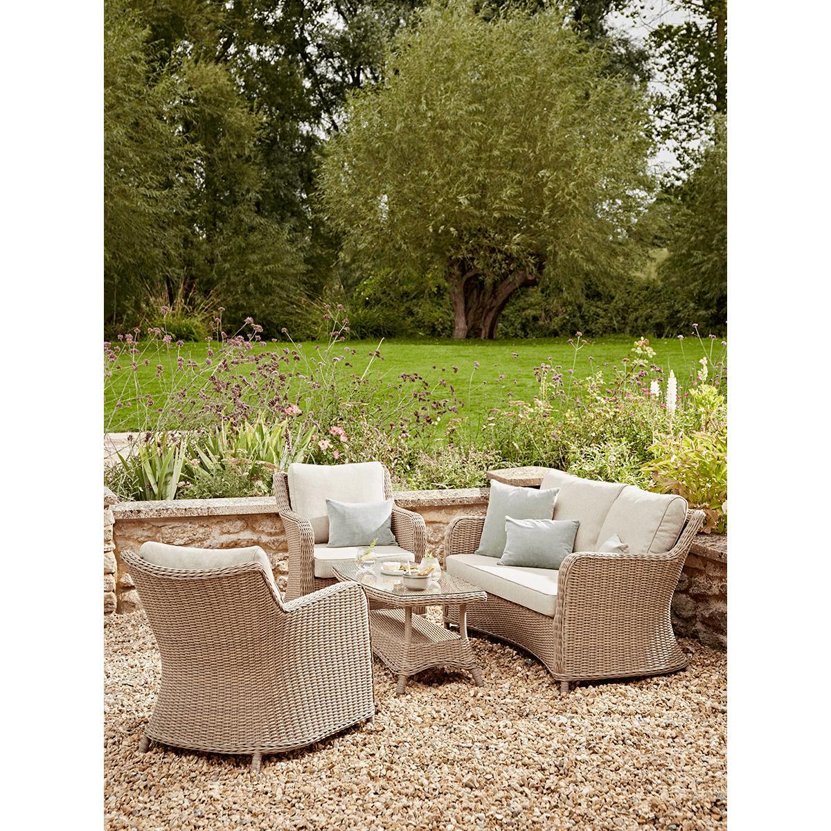 The Hampton lounge set is a timeless choice for outdoor spaces, combining comfort with classic style. Its neutral, woven finish allows it to sit seamlessly within a range of garden or summer house interiors, especially those leaning towards a relaxed, country, or coastal aesthetic. I love pairing this set with soft cushions in muted pastel shades or natural fibres to enhance its inviting feel. Practical styling tips include adding a weatherproof throw for chillier evenings and positioning it on a paved or gravel base for stability and easy maintenance. It works particularly well in gardens that feel lush and green, creating an effortless transition between outdoor and indoor living.