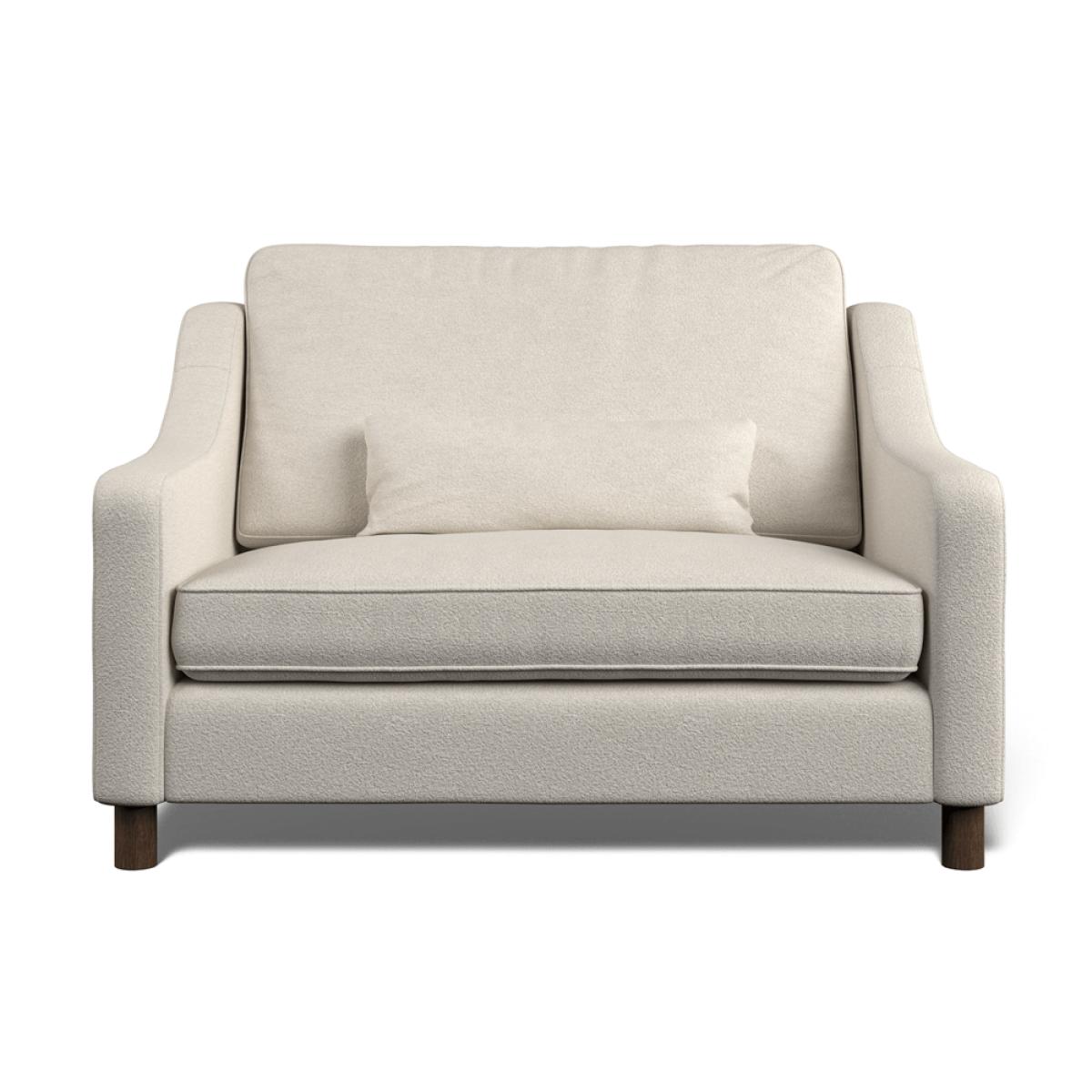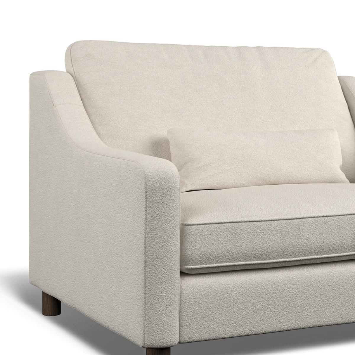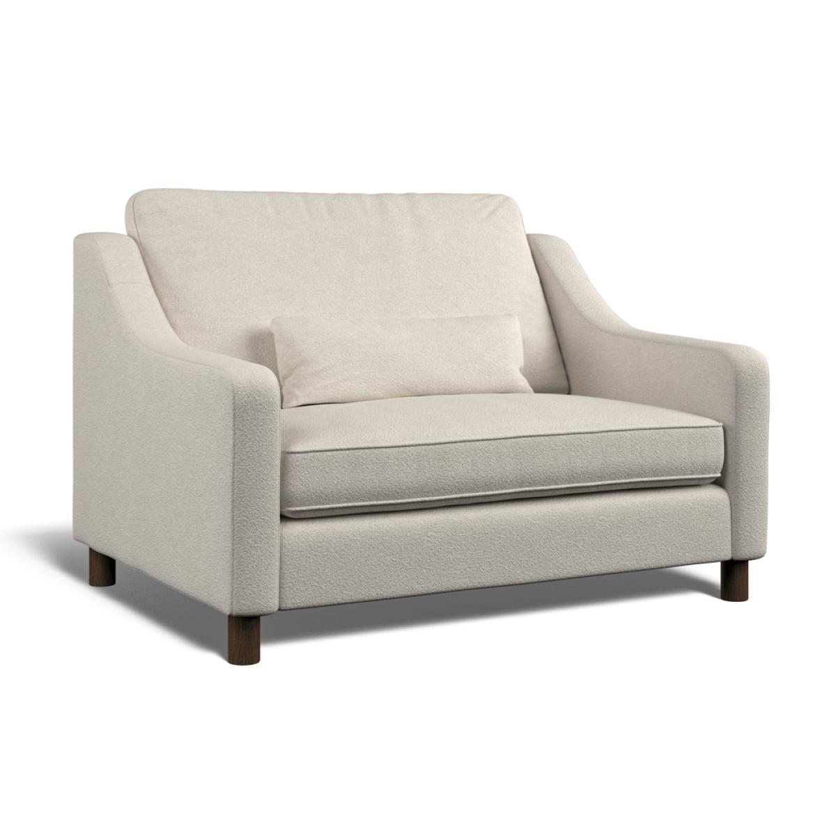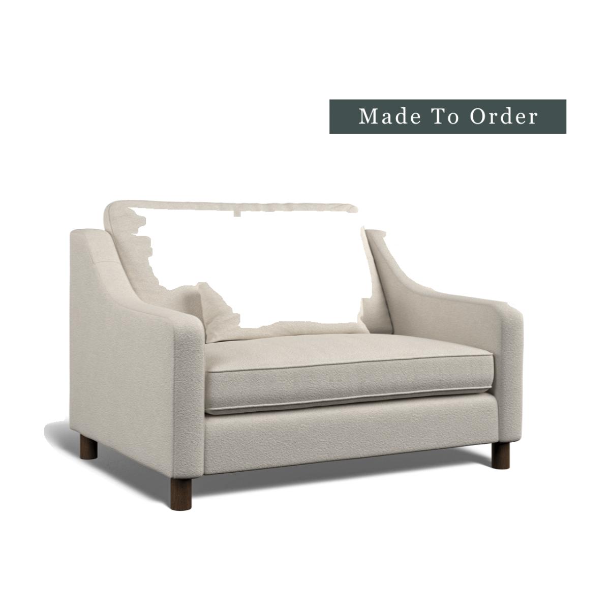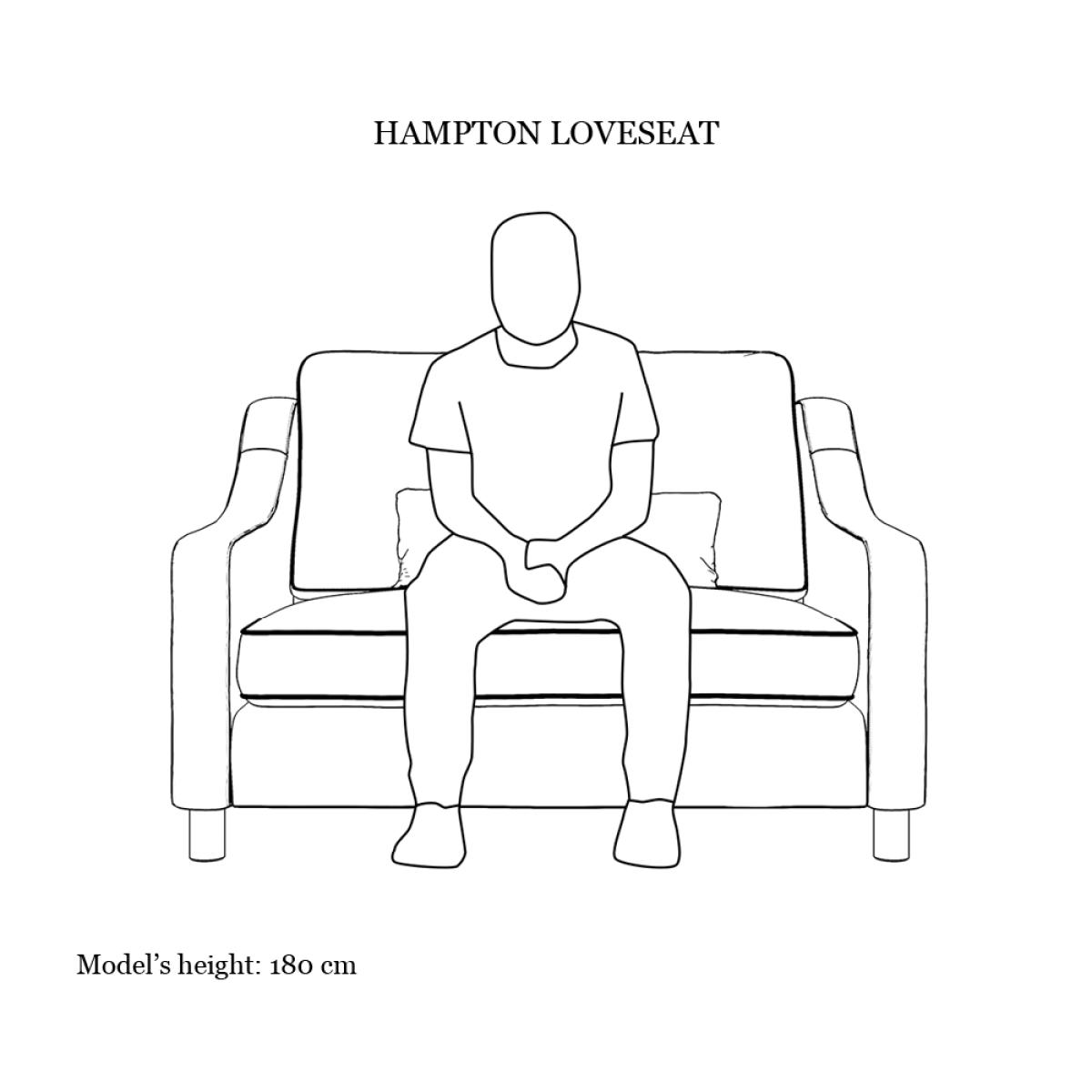 Our Hampton Loveseat is made to be lounged in, and its comfortable, elegant proportions are perfect for any formal or casual living space. This classic style incorporates comfortable high back cushions, swooping armrests, and supportive lumber cushions. It sits on solid beech wood legs. Elegant and timeless, the Hampton collection includes a matching range of armchairs, 3 and 4 seater sofas. All with generous proportions for maximum comfort. This range offers a medium-to-soft supportive ‘sit’, with high back cushions constructed from soft fibre, and seat cushions constructed with a medium density foam core with soft fibre wrap. The scatter cushions are filled with premium European duck feather for a perfectly soft recline. Skilfully produced by master upholsterers in UK using premium materials such as a hardwood frame, which has been glued and screwed for a robust build that will last the test of time. Each item is made to order and upholstered in your choice of either Bouclé (2 colours available) or Easy Clean Eco Velvet (8 colours available). Our Sofas and Armchairs are handmade to order in our UK factory.
