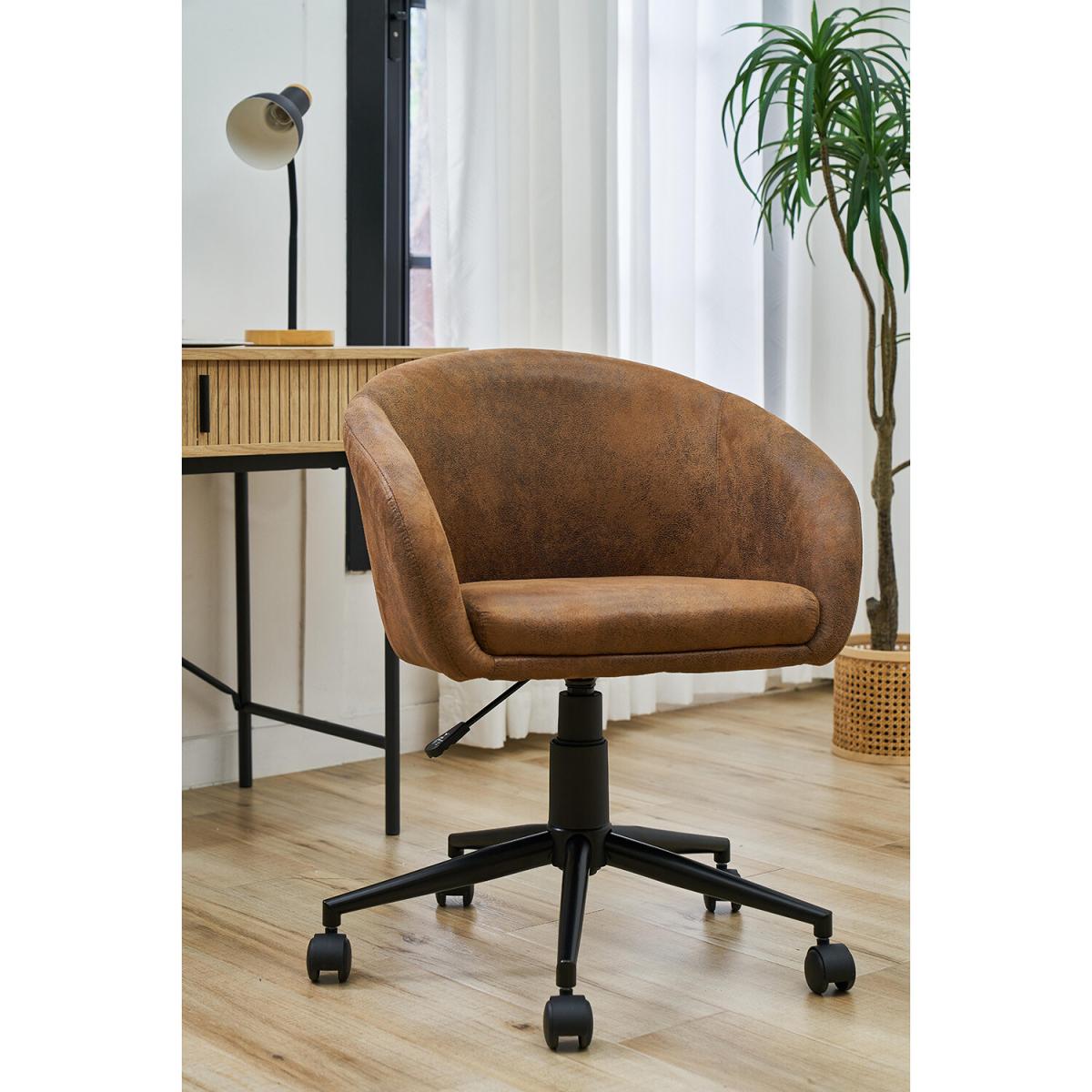 Upholstered in luxurious brown faux suede for a modern and stylish look with a vintage touch, this Hampton Office Chair has a padded seat for extra comfort so that you can work easily all day long whether you're working from home, playing games, or engaging in hobbies. It is height adjustable to fit your desk and will be the perfect addition to your home office or dressing room.