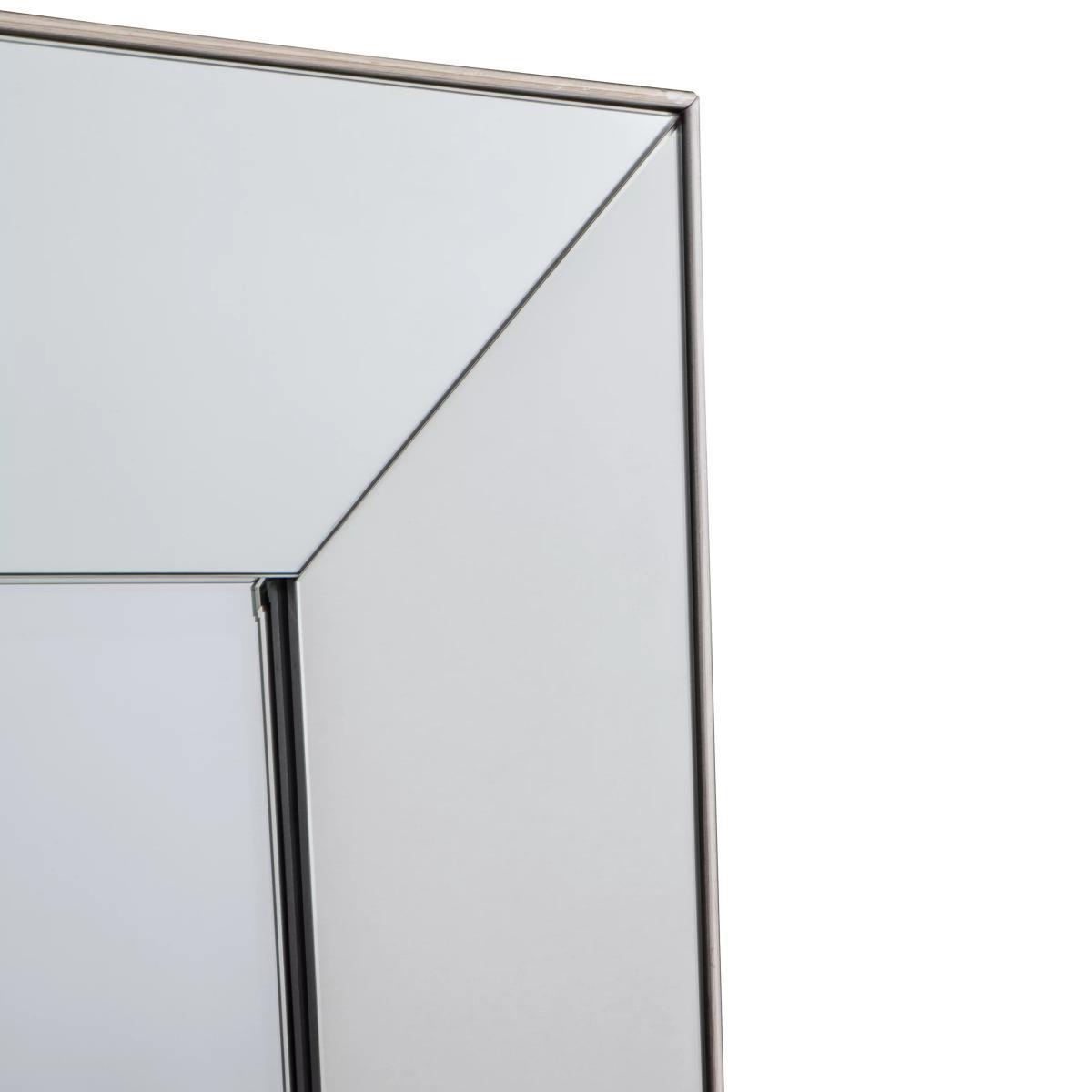 Wide, shallow-angled glass creates a stylish look for the Hampton mirror. This rectangular mirror is ideal for capturing full-length reflections and leans against a wall without having to be mounted. It also includes D-ring fittings on the back if you decide to wall mount the mirror.