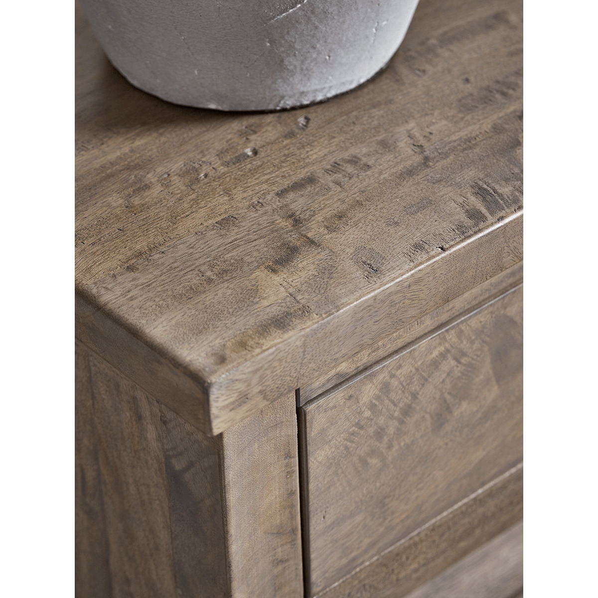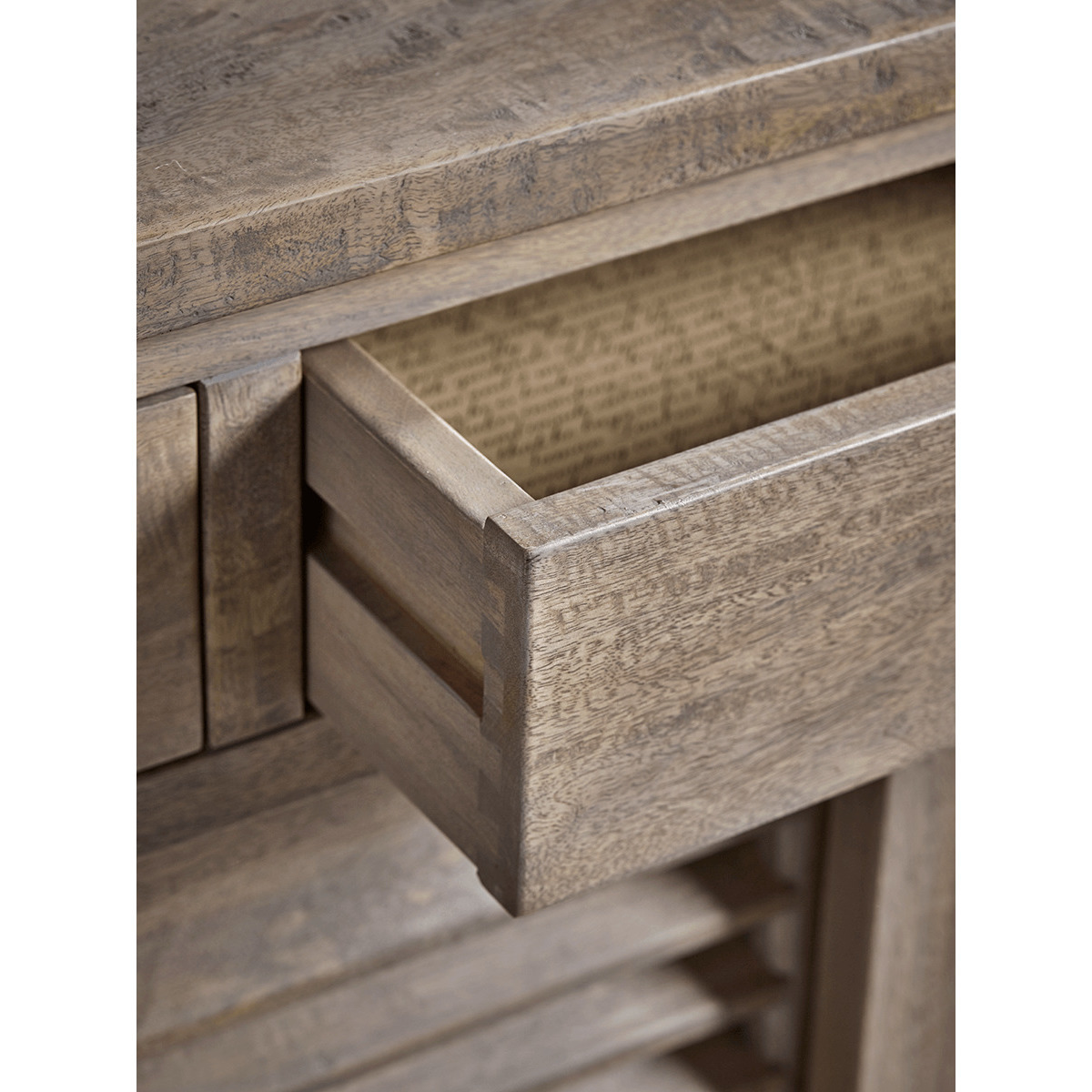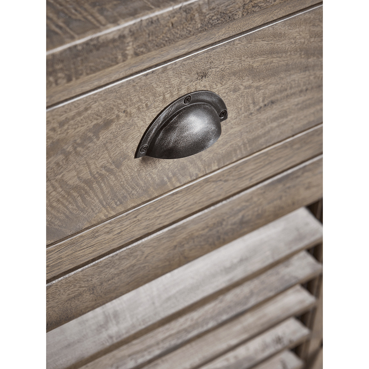 The perfect statement piece for any home, our rustic sideboard features three handy drawers and plenty of storage space, with a subtle nod to French design in the form of shutter style sliding doors. With a visible wood grain, two hidden shelves and a simple, brushed zinc handle to each drawer, it can be styled to perfection or left to speak for itself.