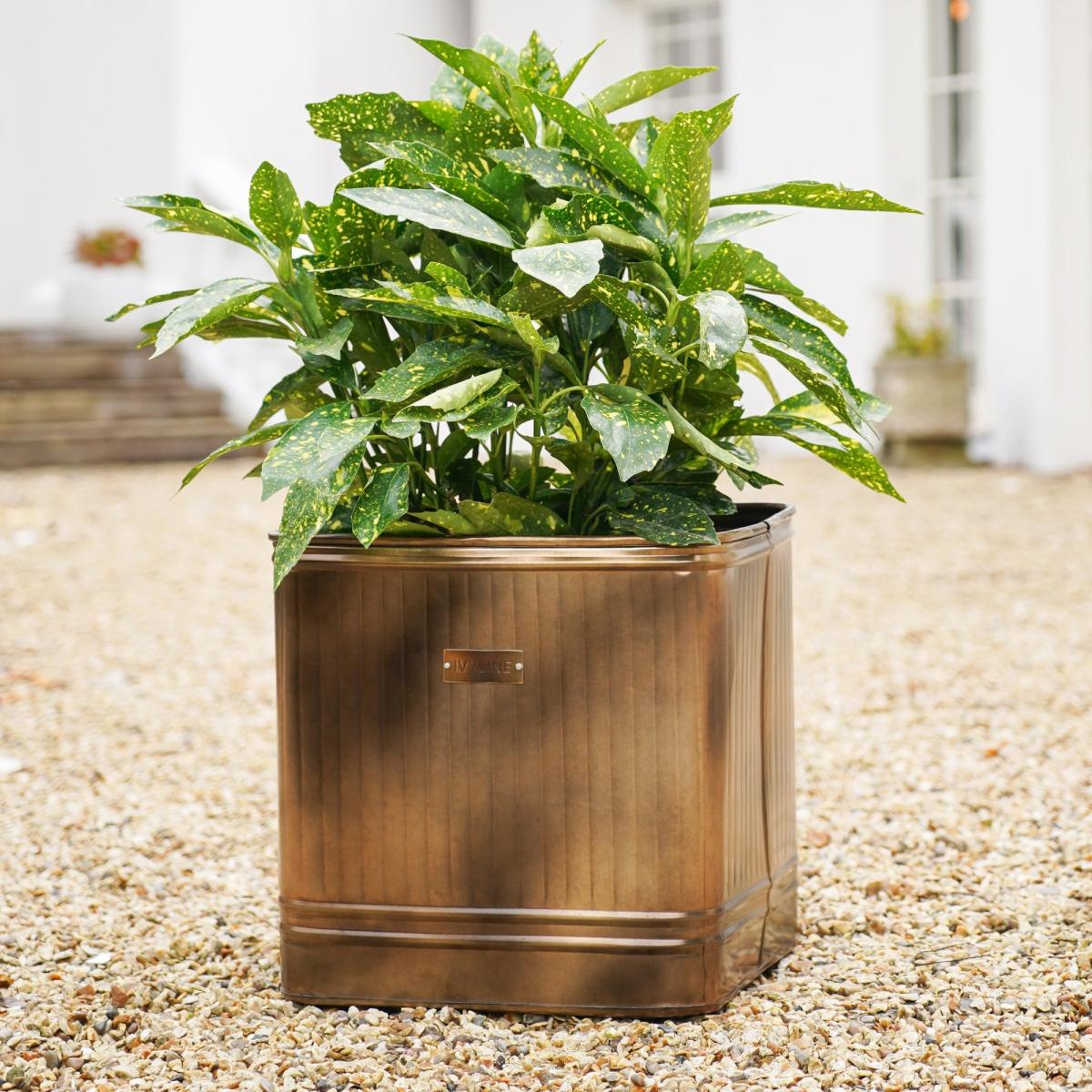 Showcase your favourite flowers or succulents with the Hampton Square planter to create a stunning visual display. Providing ample space for your favourite plants to grow and flourish, the compact cube shape can create a practical and eye-catching look. With frost resistant, rust resistant and UV stable qualities, this planter is perfect for outdoor use and the luxurious copper finish can be combined with other products from the Hampton range for a coordinated look.