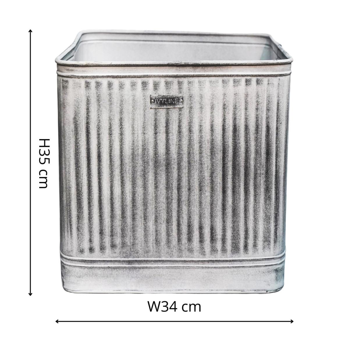 Hampton Square Galvanised Metal Outdoor Planter Grey