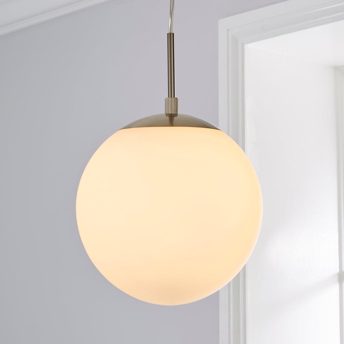 Add a stylish and modern touch to your home with this dimmable pendant light. Featuring a stunning satin nickel finish and an opal glass diffuser. This light comes with a 2 year guarantee. Click. Here. To view our Terms & Conditions.