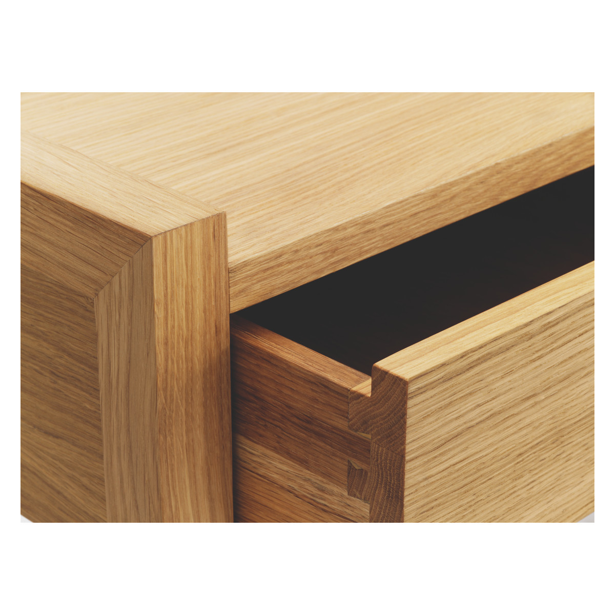 The Hana II oak console table with 3 drawers is part of an elegant, timeless furniture range, made from lacquered solid oak and oak veneer. The drawers feature decorative dovetail joints, which provide high tensile strength to withstand constant pulling and pushing motions. The table is a great addition for the hallway or can be used as a dressing table. Designed by Award winning designer Bethan Gray, the Hana collection offers substance and style for your home.