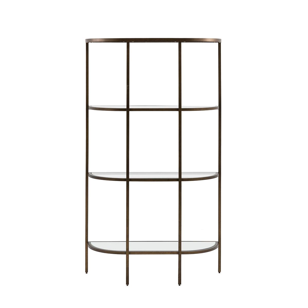 A luxe display unit with a beautifully elegant curved shape creating a genteel silhouette with a twist of speakeasy glamour. Featuring three glass upper shelves, and mirror glass bottom shelf, all beautifully complemented by the vintage finished metal frame. Product details. Fixed shelving. Open back Aged gold leaf style legs. Anti-topple kit includedFreestanding. Fully assembled. Product Composition - Metal / Glass / MDFProduct Dimensions - 35 cm x100 cm x175 cm , Weight - 24.5 KGDistance Between Shelves- 20 cm / 50 cm / 48 cm / 48 cm Clearance to floor- 20 cm Parcel 1 Packaged Dimensions - 109 cm x 44 cm x 22 cm,Weight 26.3 kg Parcel 2 Packaged Dimensions - 183 cm x 28 cm x 7 cm, Weight 7.1 kg. This product will be dispatched by one of our trusted suppliers. You’ll be contacted by their selected courier about your delivery. Please note: this product cannot be delivered to all Offshore Islands, Northern Ireland or Republic of Ireland. GALLE01