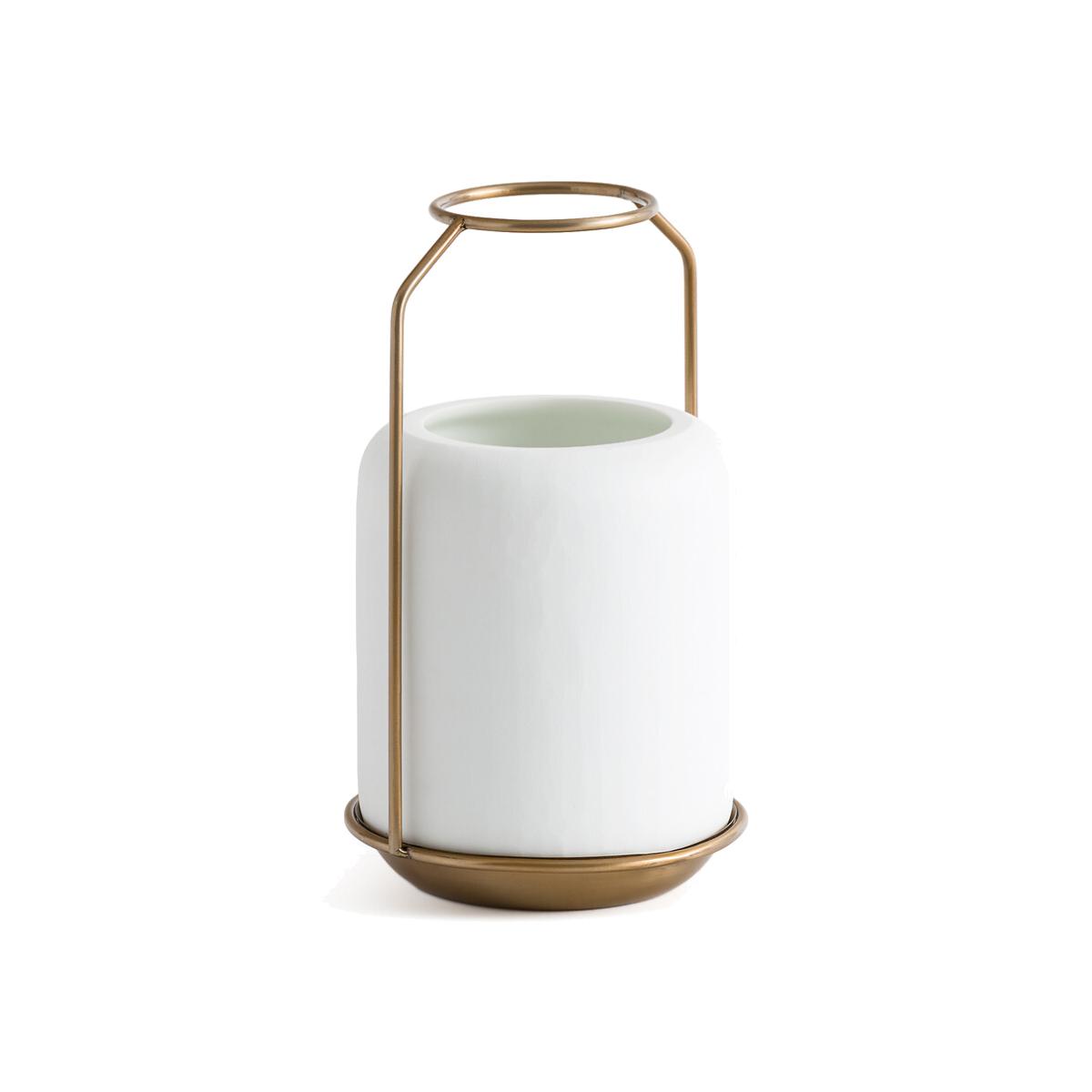 Placed in the garden, on a window ledge, on a table or a console, the Hana lantern creates a soft and warm atmosphere. It sifts, diffuses and sublimates the light of the candles, making the golden metal support sparkle. In natural light, the tinted glass is opaque. A universal, decorative and functional object with a contemporary design. Product Details • Tinted opaque glass • Mass-dyed colour. Dimensions • Diameter: 11cm • Height: 21cm