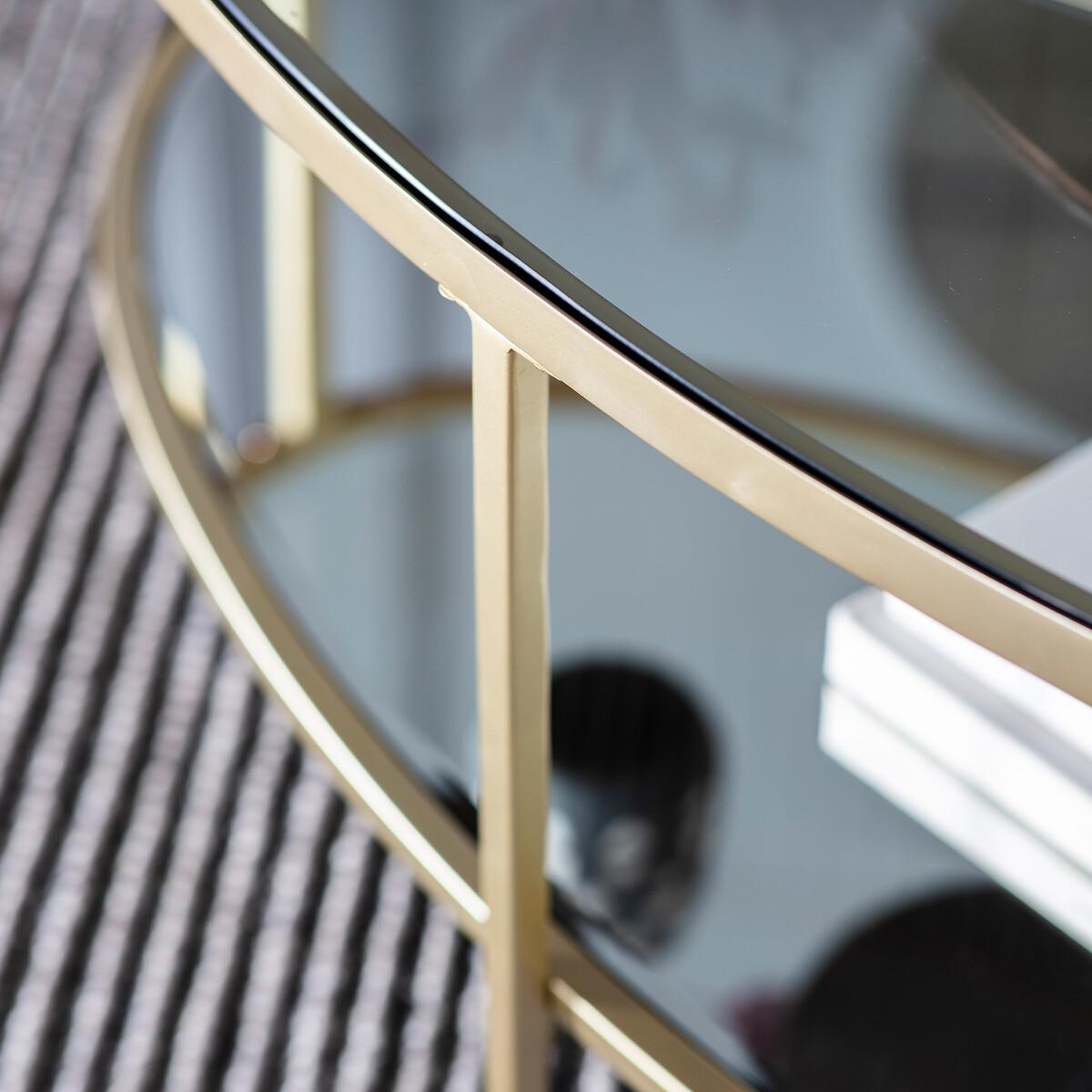 Stunning oval metal coffee table in champagne finish with inlaid, tempered glass top and mirrored shelf. Product details0.8 cm and 0.4 cm tempered glass. Tempered glass is stronger than ordinary glass, resistant to scratches, and can withstand high temperatures. Assembly required. Product Composition - Glass, Iron, MDFProduct Dimensions - 61 cm x 112 cm x 51 cm , Weight - 21 KGPackage Dimensions - 126 cm x 71 cm x 16 cm, Weight 23.5 kg. This product will be dispatched by one of our trusted suppliers. You’ll be contacted by their selected courier about your delivery. Please note: this product cannot be delivered to all Offshore Islands, Northern Ireland or Republic of Ireland.