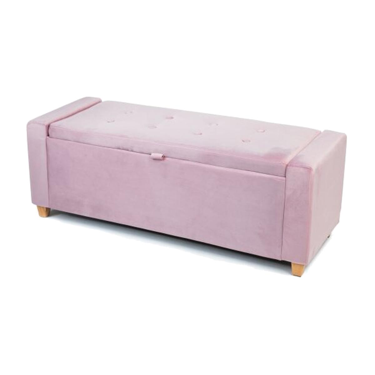 The Hana storage bench offers a simplistic yet modern design. It is upholstered in a velvet fabric which provides a luxurious feel at an affordable price. The bench includes hidden storage which can be revealed by simply lifting the lid at the longest side. The storage space is as big as the bench itself, providing a perfect area to store cushions, sheets, towels, toys, shoes etc in any room of the house. It is an ideal space saving option that additionally looks aesthetically pleasing. The bench is available in 4 colours: light blue, pink, grey and emerald. DIMENSIONS:L110 x D40 x H40 cm.