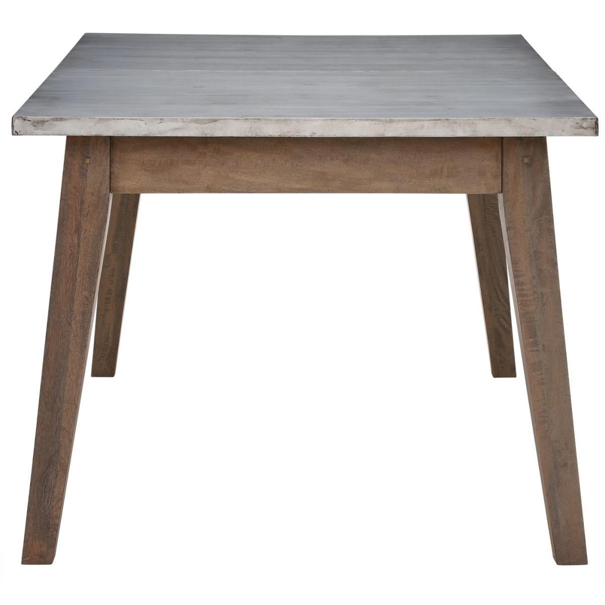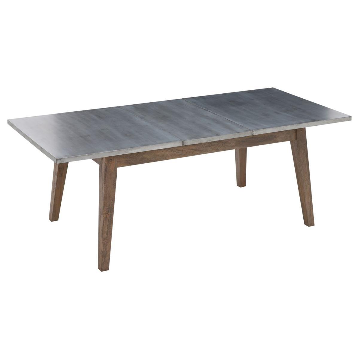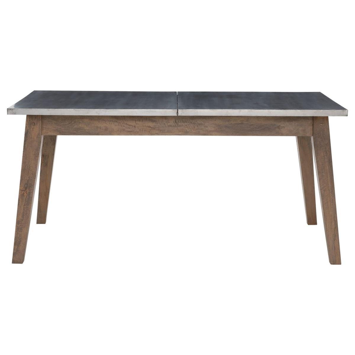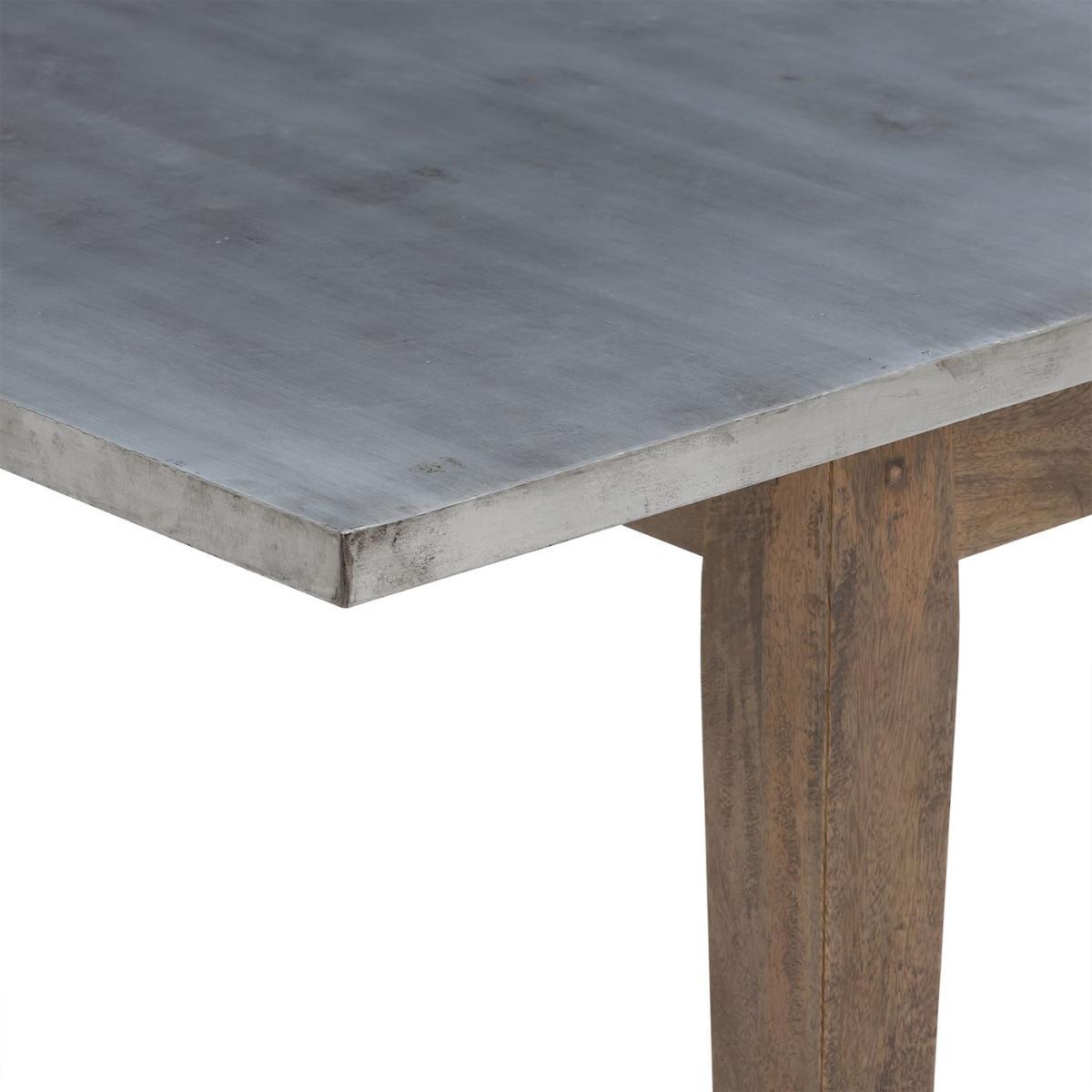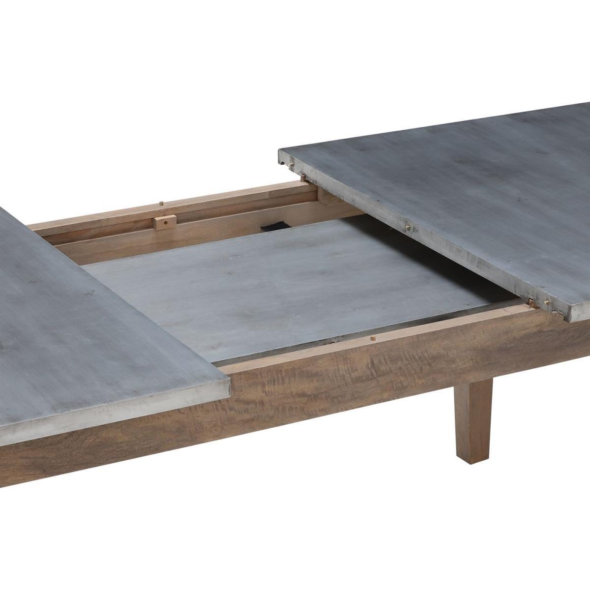 Design. Ideal for creating a relaxed and rustic dining area, the Hancock extending zinc top dining table is crafted from mango wood and features a salvage grey finish adding character and a slightly distressed look. Combining functionality with style, the extension leaf is conveniently stored within the table, making room for additional guests as stress-free as possible. With a galvanised iron coating to protect it from the throes of everyday life, this zinc top dining tablewill givea modernindustrial twist to your dining room.