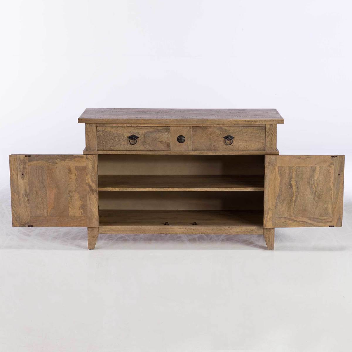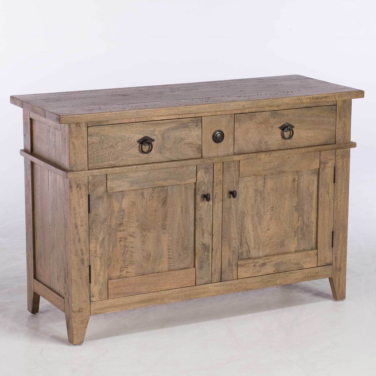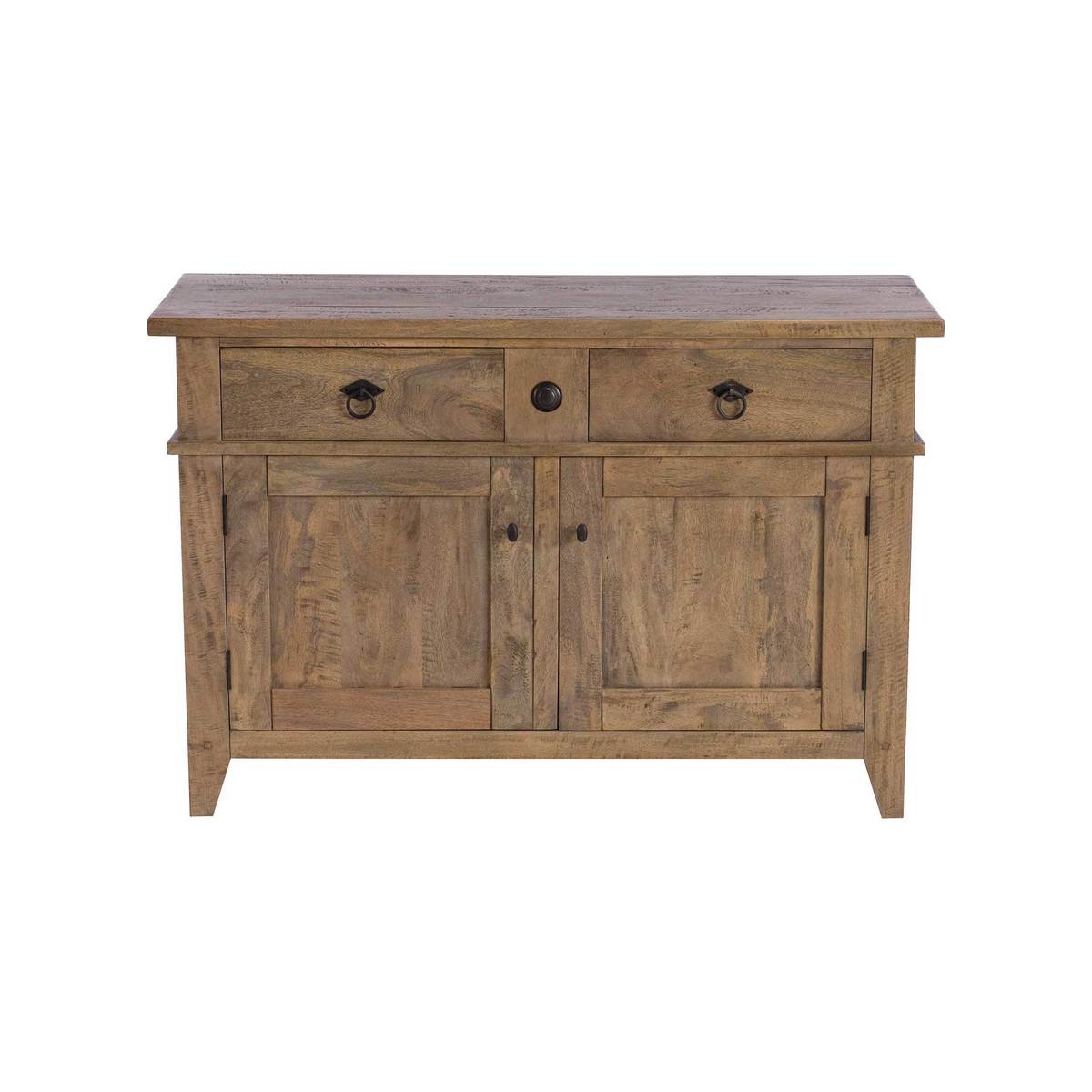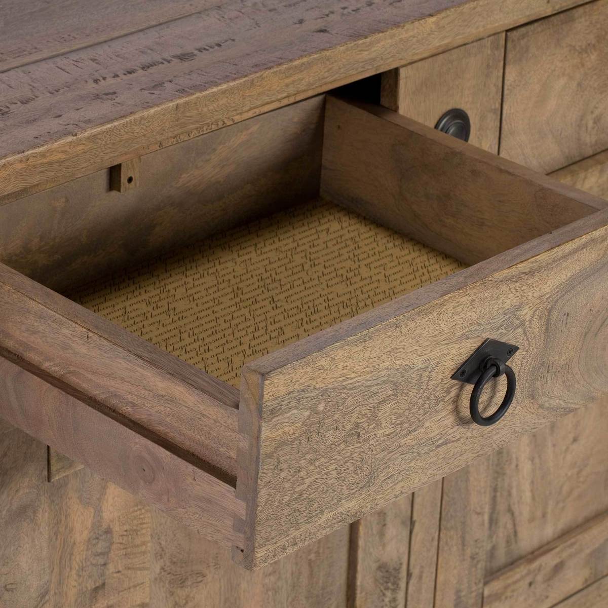The Hancock small sideboard offers a beautiful combination of warm distressed wood with a touch of metal offering a classic design with hints of industrial styling.;Crafted from mango wood, with petite metal handles and gorgeous ring pulls to give a beautiful traditional finish.;Two spacious cupboards and practical drawers make this sideboard destined for downstairs living, offering ideal storage to keep your home in perfect order.