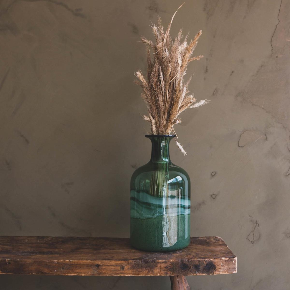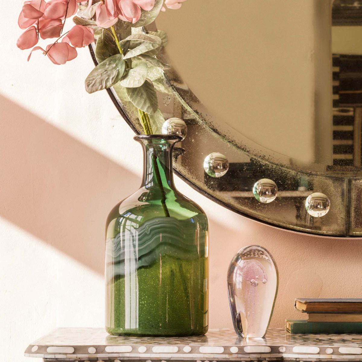 I love this hand blown green bottle vase for its artisanal feel and subtle colour that works well in both contemporary and vintage-inspired interiors. Its shape is versatile-perfect for showcasing a few sprigs of fresh or dried flowers, or even standing alone as a decorative object. I recommend placing it on a sideboard or mantel for an understated focal point, and pairing it with other muted or natural textures to highlight its handmade charm. To get the most out of it, try mixing it with clear or neutral-toned vases for visual interest, and keep arrangements simple to let the colour and shape really stand out.