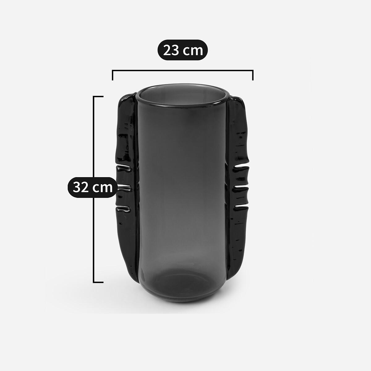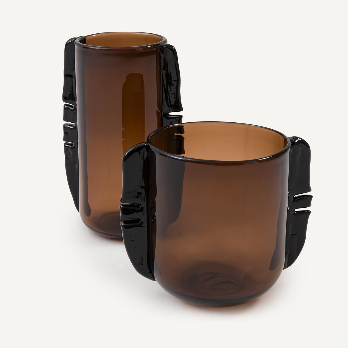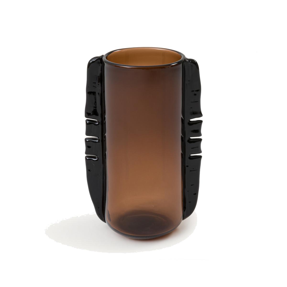 A sculptural Vase. A sober, tropical look. Its mouth-blown amber-tinted glass is highlighted by a black frieze added and cut with a knife by the artisan glassmaker. A piece with character, as beautiful on its own as with flowers. Product Details • Made from hand-blown glass • Hand-crafted, each piece is unique. Dimensions • Width: 23cm • Height: 32cm • Depth: 14.5cm. Dimensions and weight of parcel • 1 parcel • W45 x H38 x D45 cm. 1.4kg
