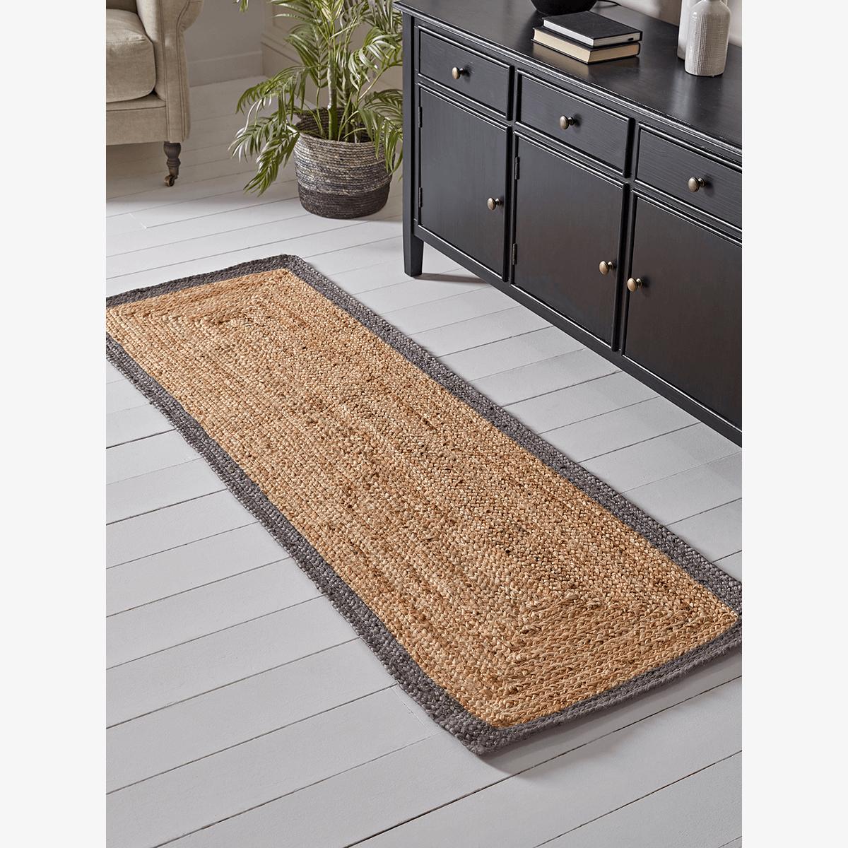 Hand-braided in natural jute, our runner has a beautiful depth of colour offset by a smart black border. A great way to bring warmth comfort and texture to a hallway or in front of a run of kitchen cabinets where you are often on your feet.